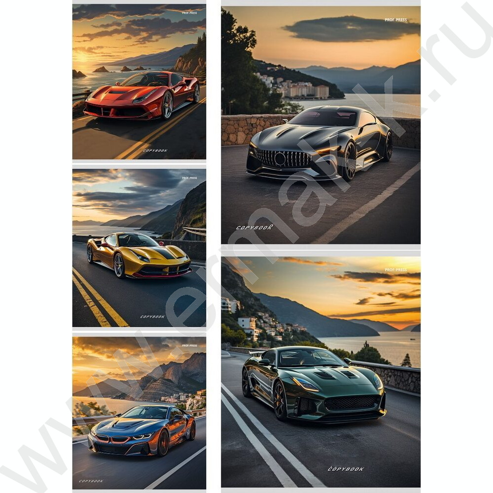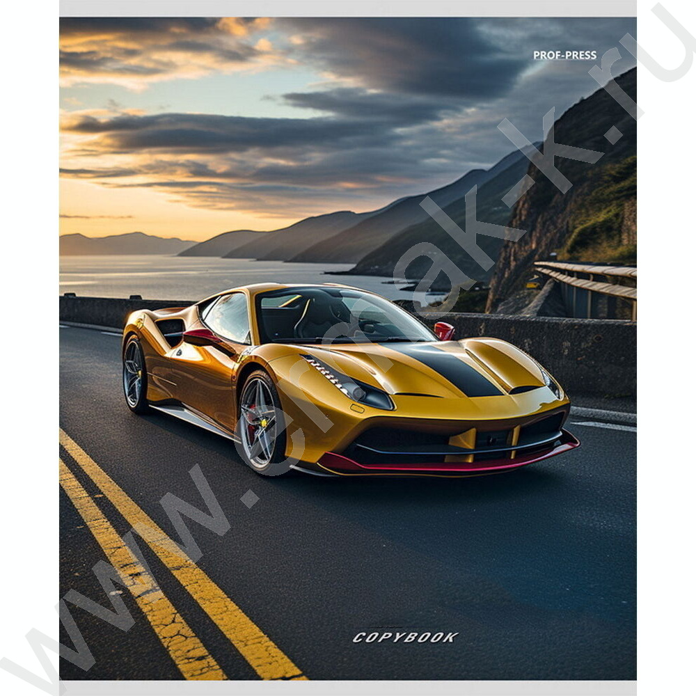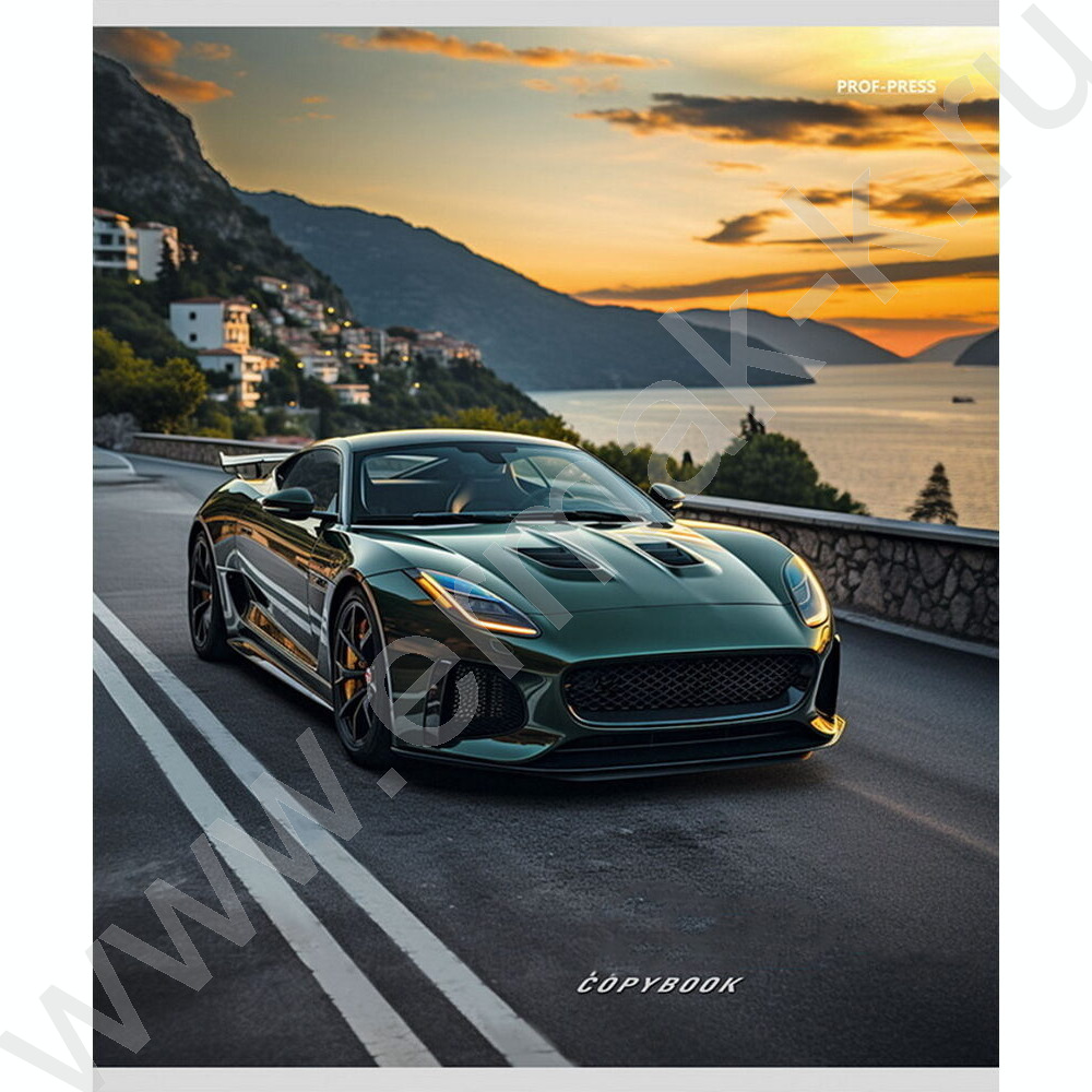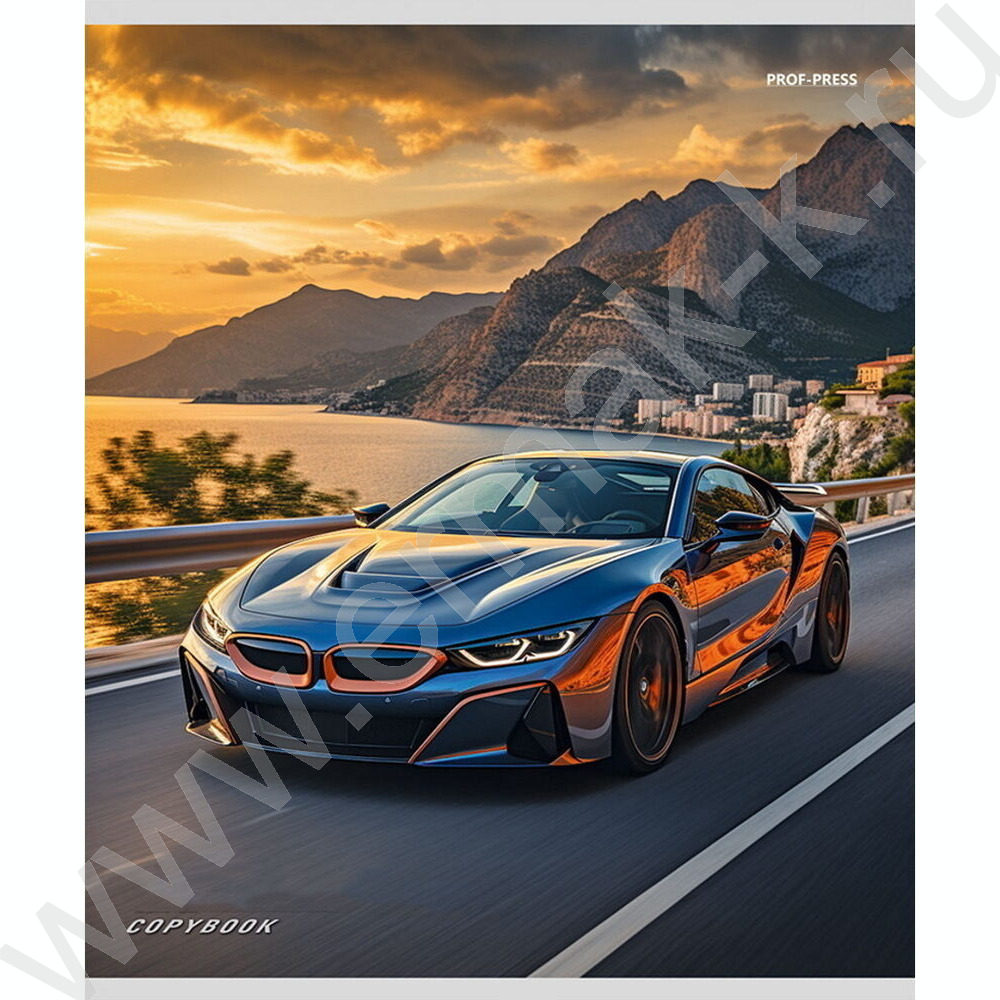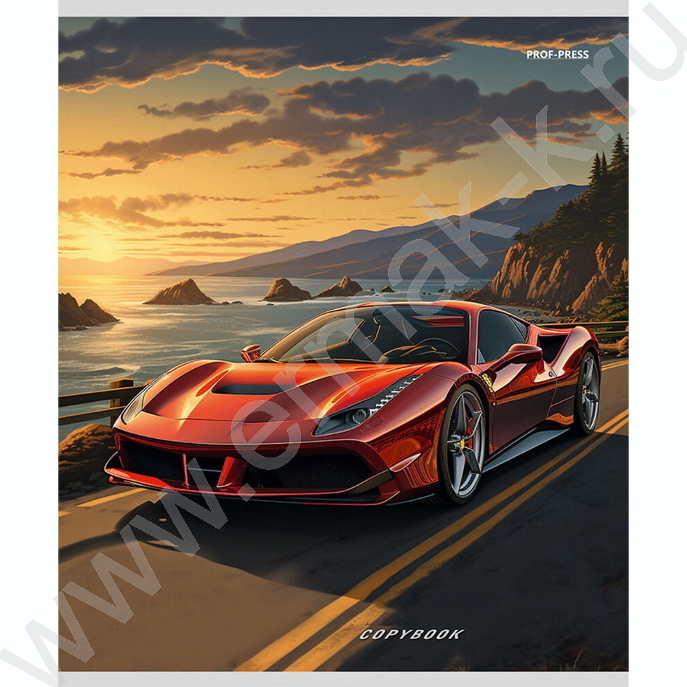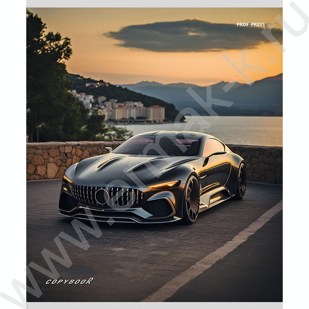 Тетрадь 48л клетка "Машины и закат" ассорти