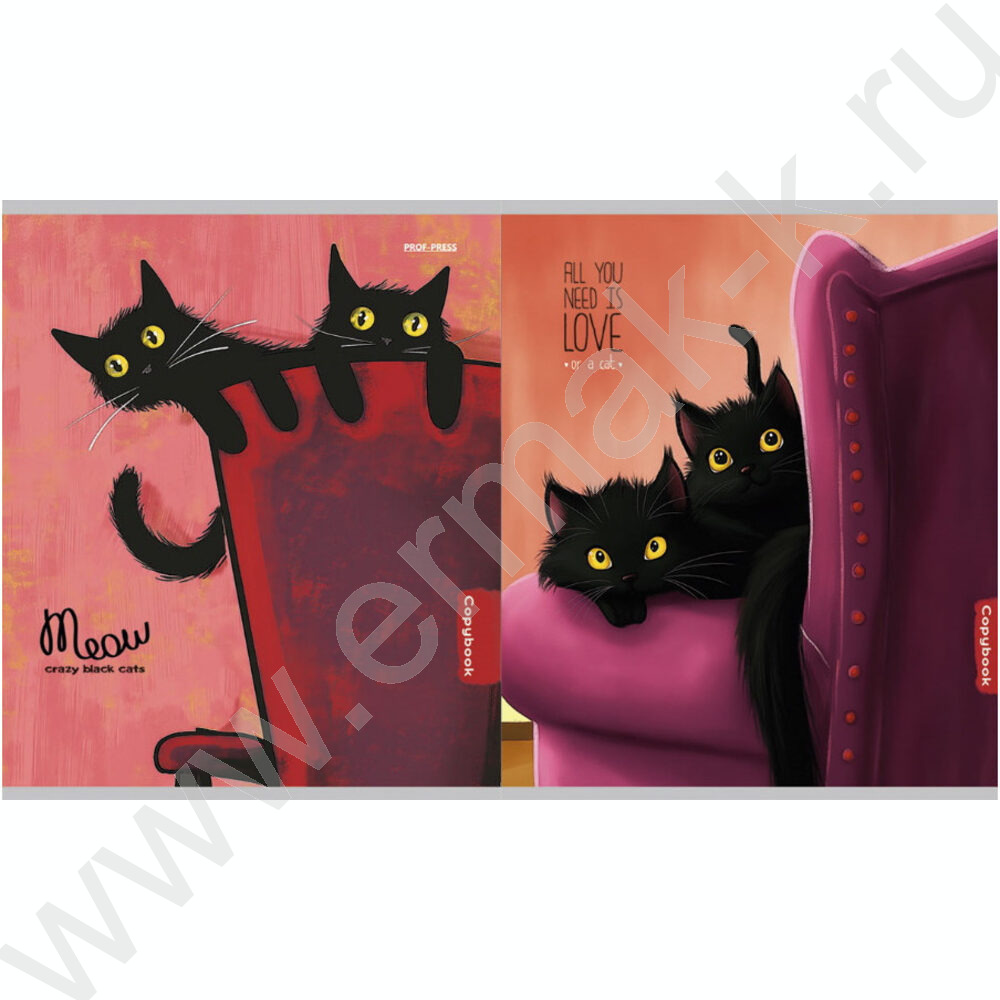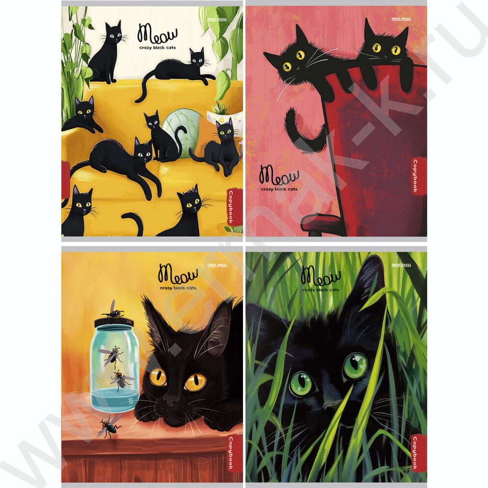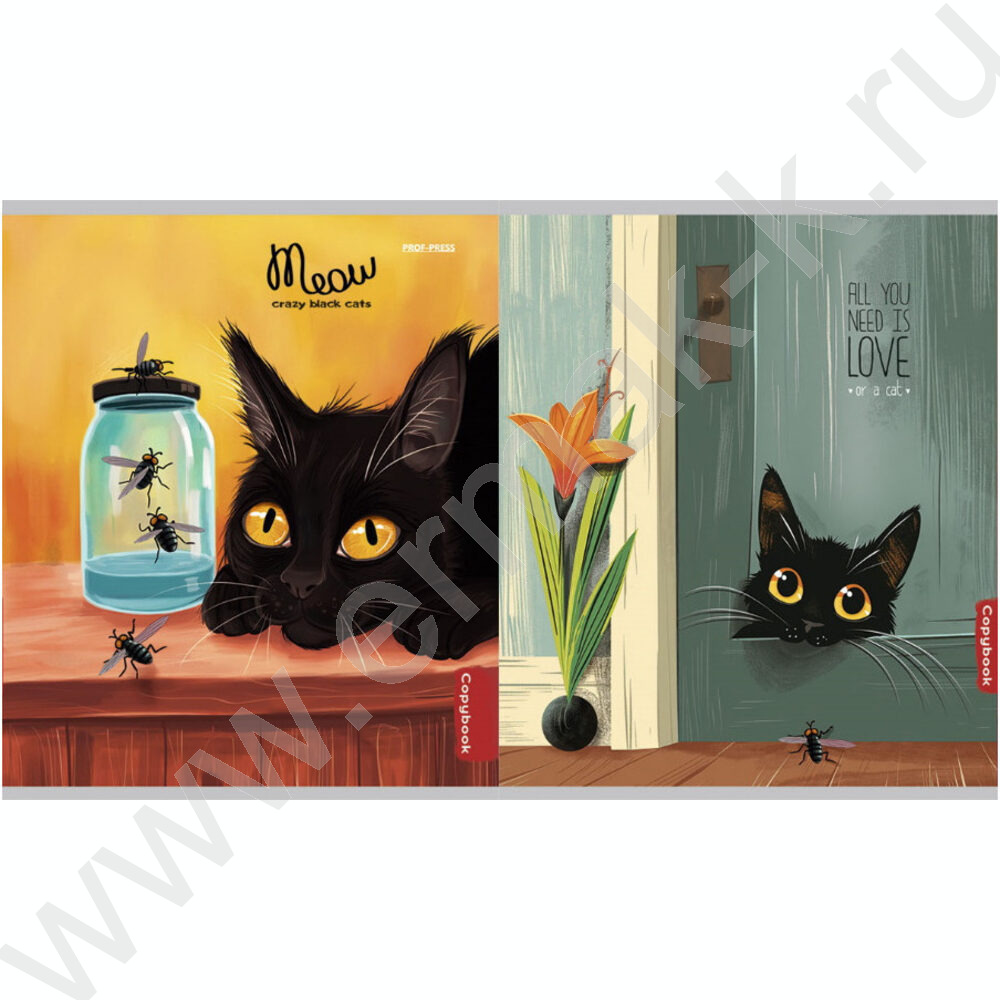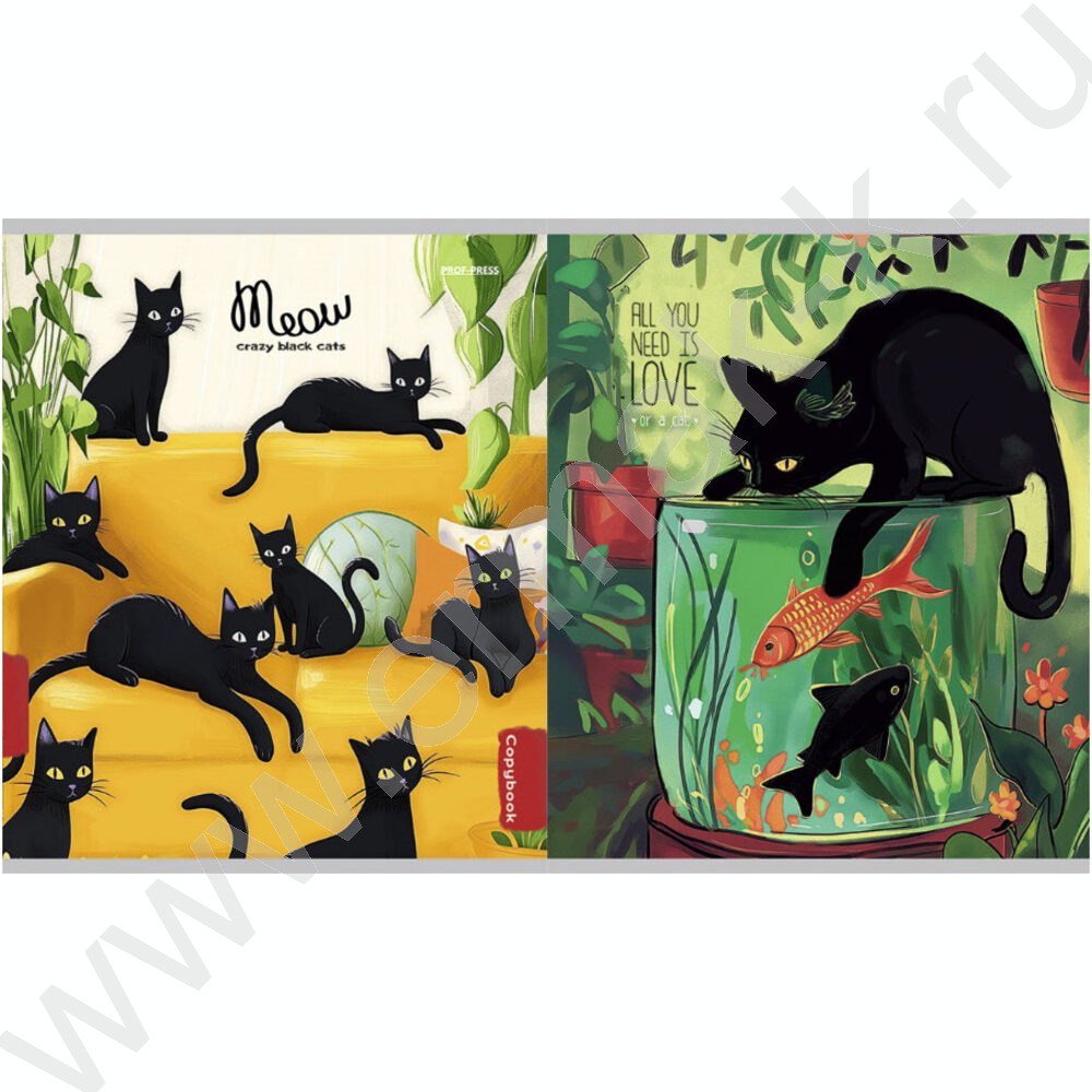 Тетрадь 96л клетка "Жизнь чёрных котиков" /перевертыши ассорти