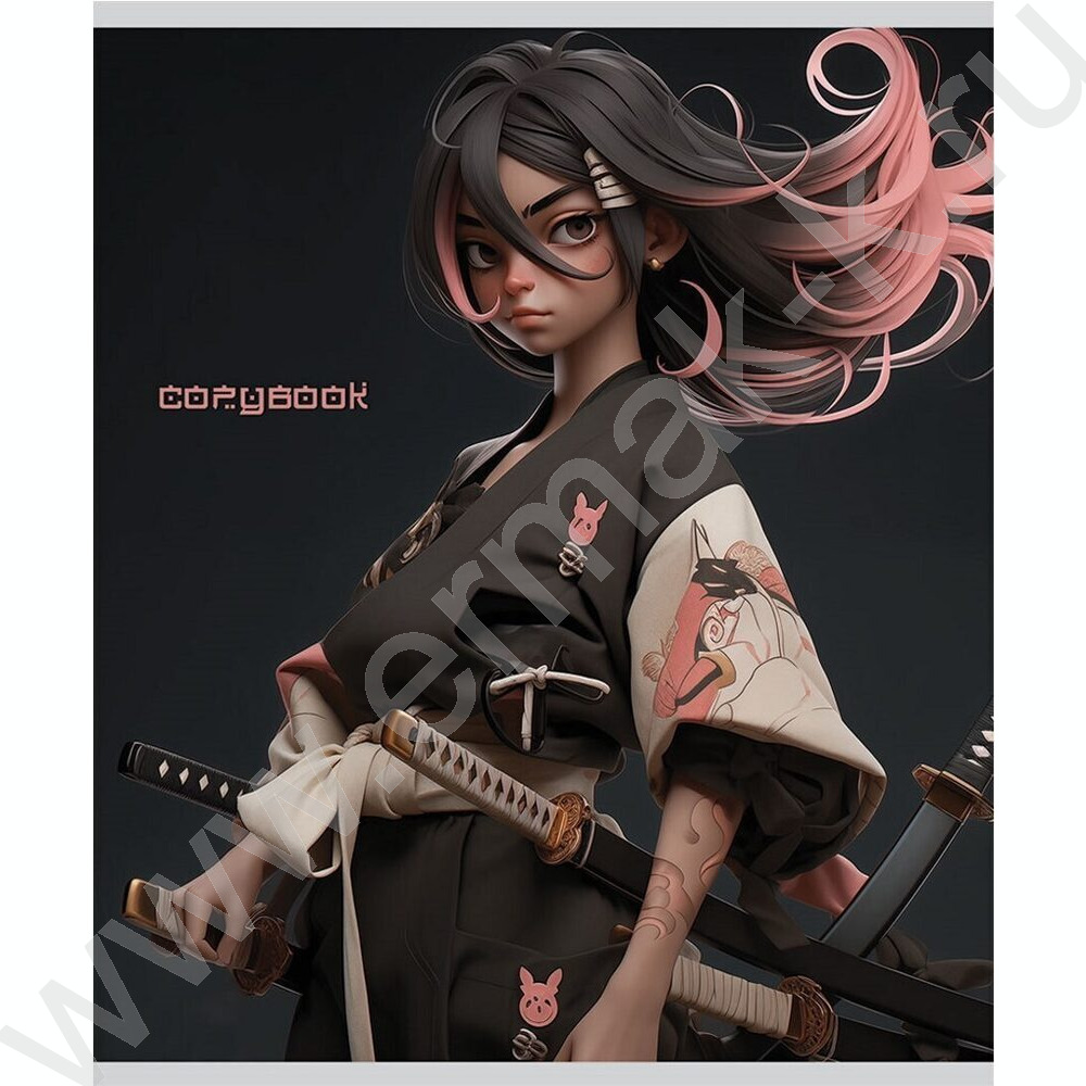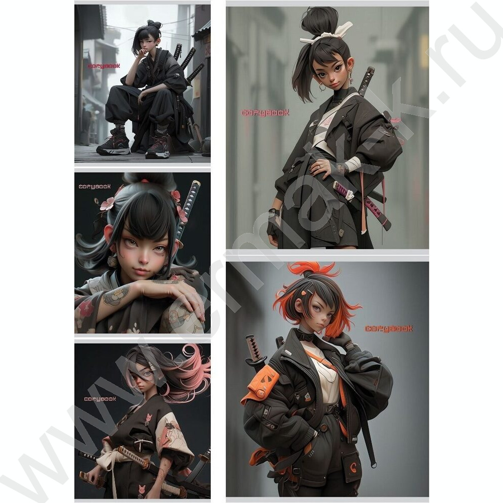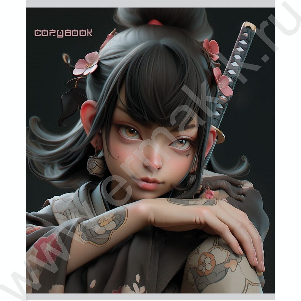 Тетрадь 48л клетка "Воинственные девушки" /софт-тач/ ассорти
