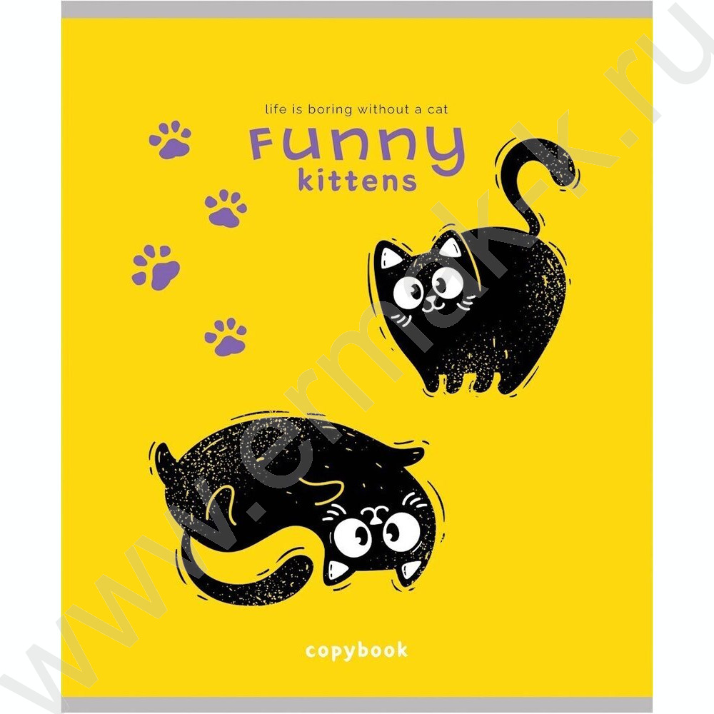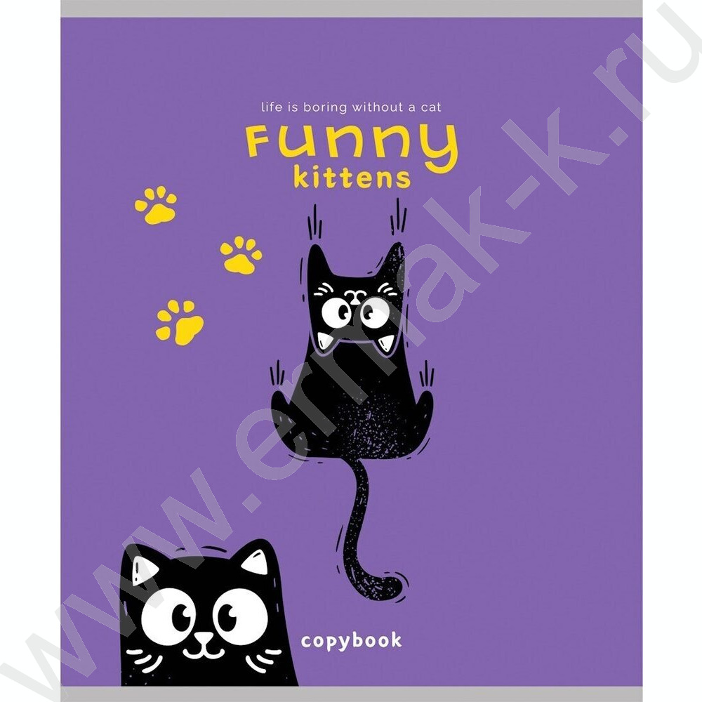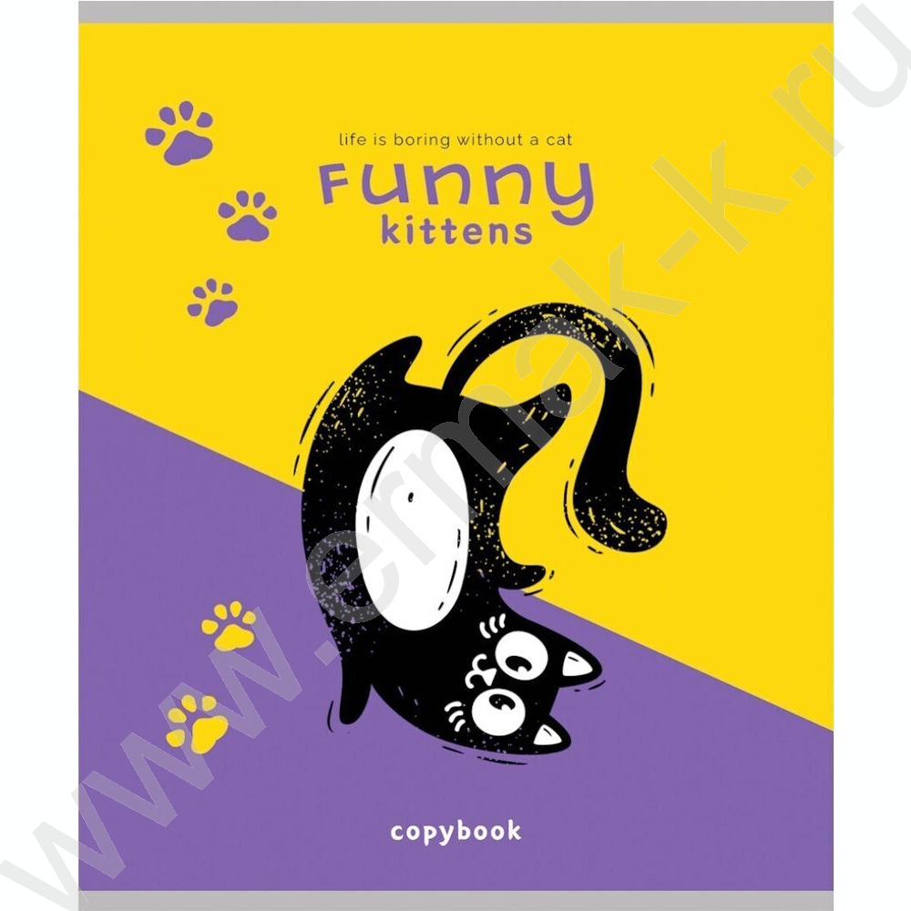 Тетрадь 48л клетка "Черно белый кот-2" /лён/ ассорти