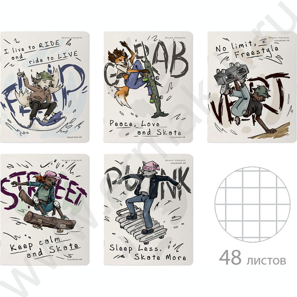 Тетрадь 48л клетка "Street skate" /мат.лам.Soft Touch/ ассорти