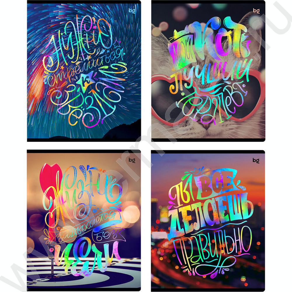Тетрадь 48л клетка "Яркие мысли" тиснение фольгой/ ассорти