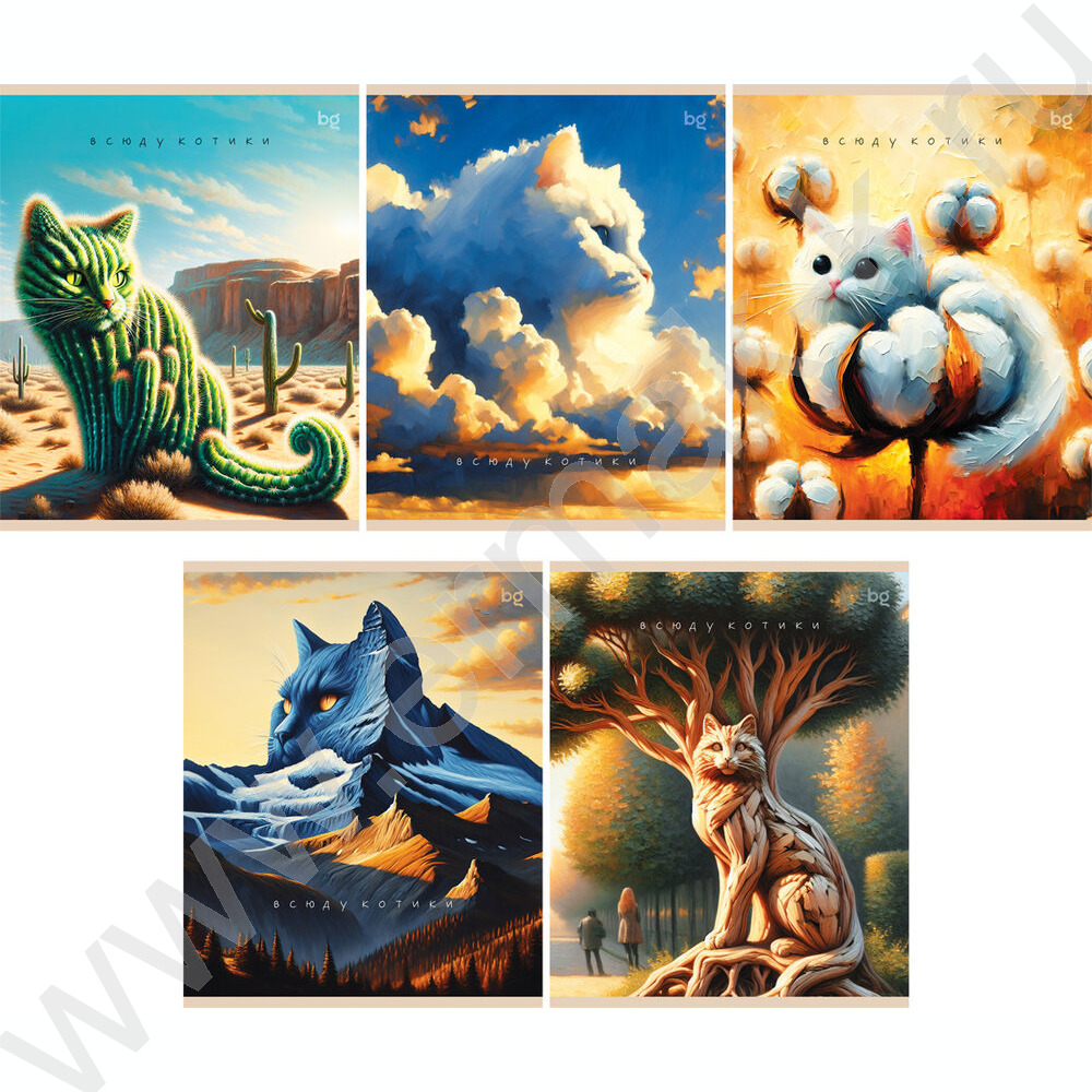 Тетрадь 48л клетка "Котики" ассорти, эконом