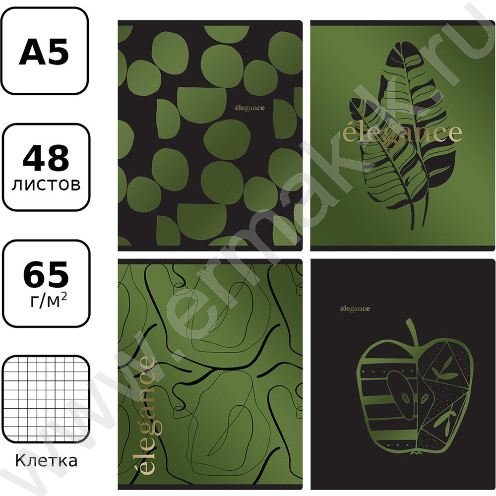 Тетрадь 48л клетка "Elegance" /металлизированный пантон, тиснение фольгой/ ассорти