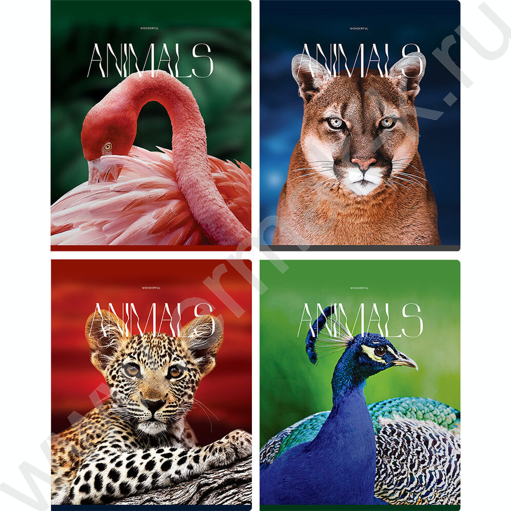 Тетрадь 96л клетка "Животные" глянцевая ламинация/ ассорти