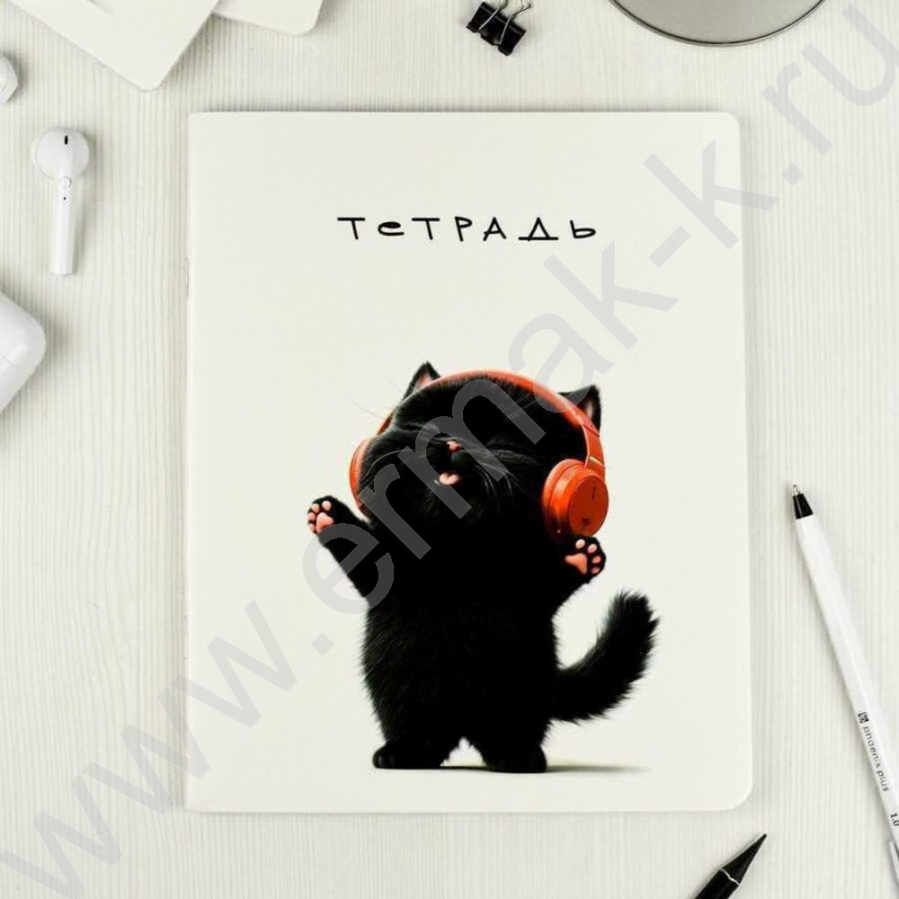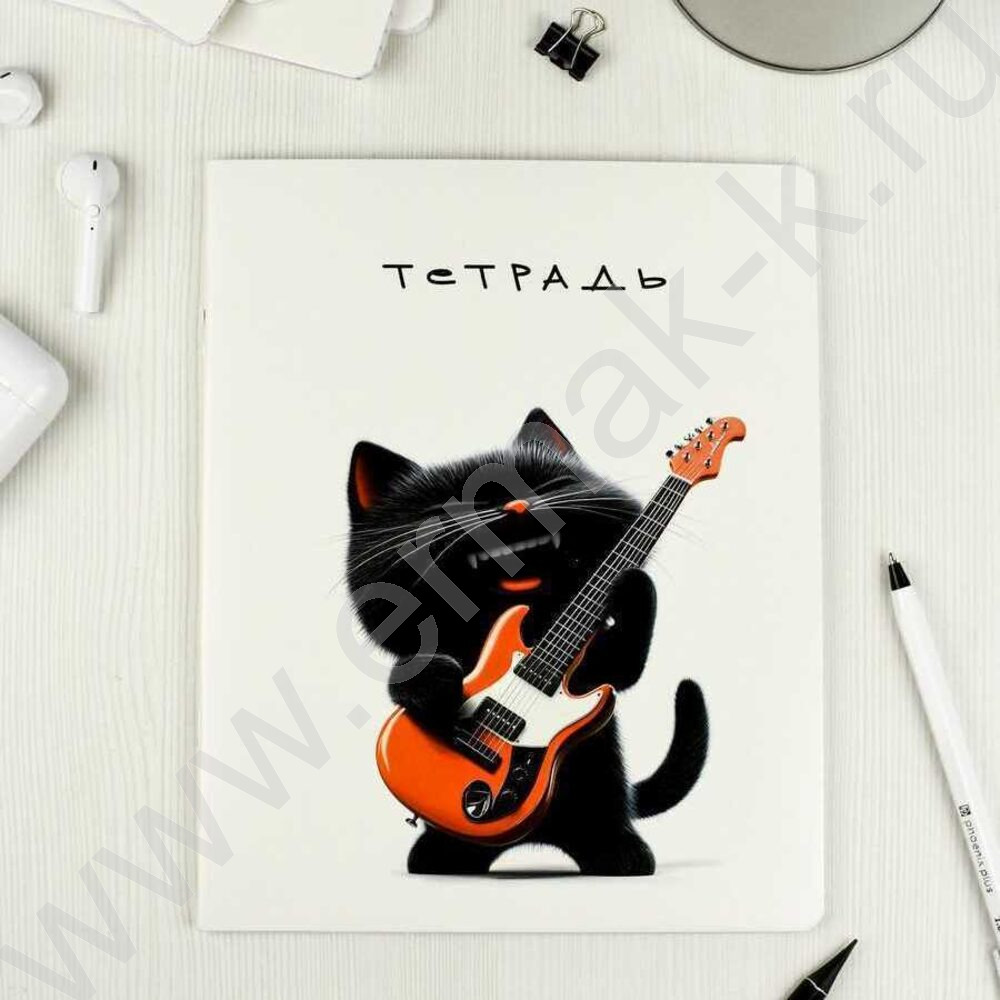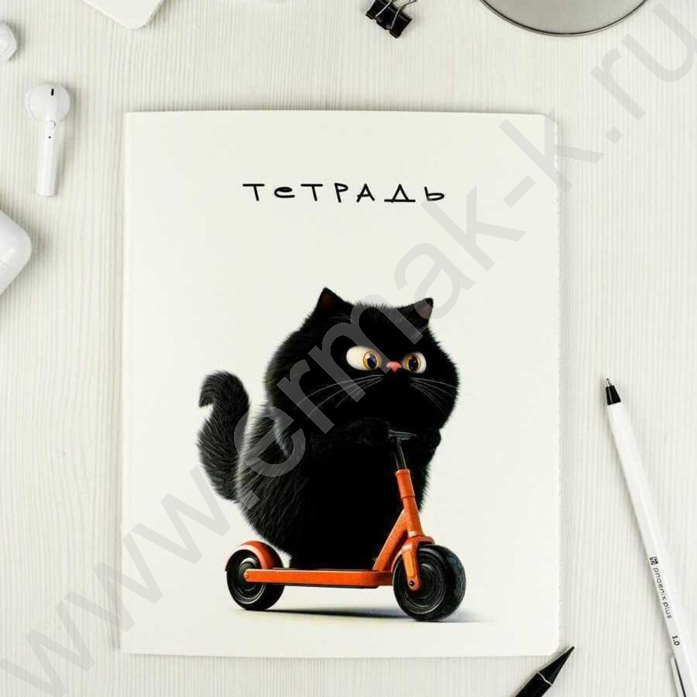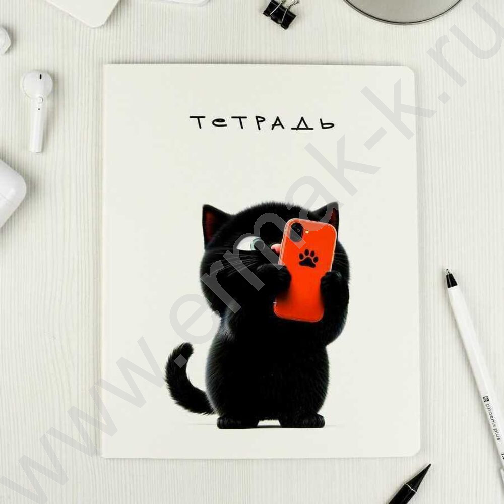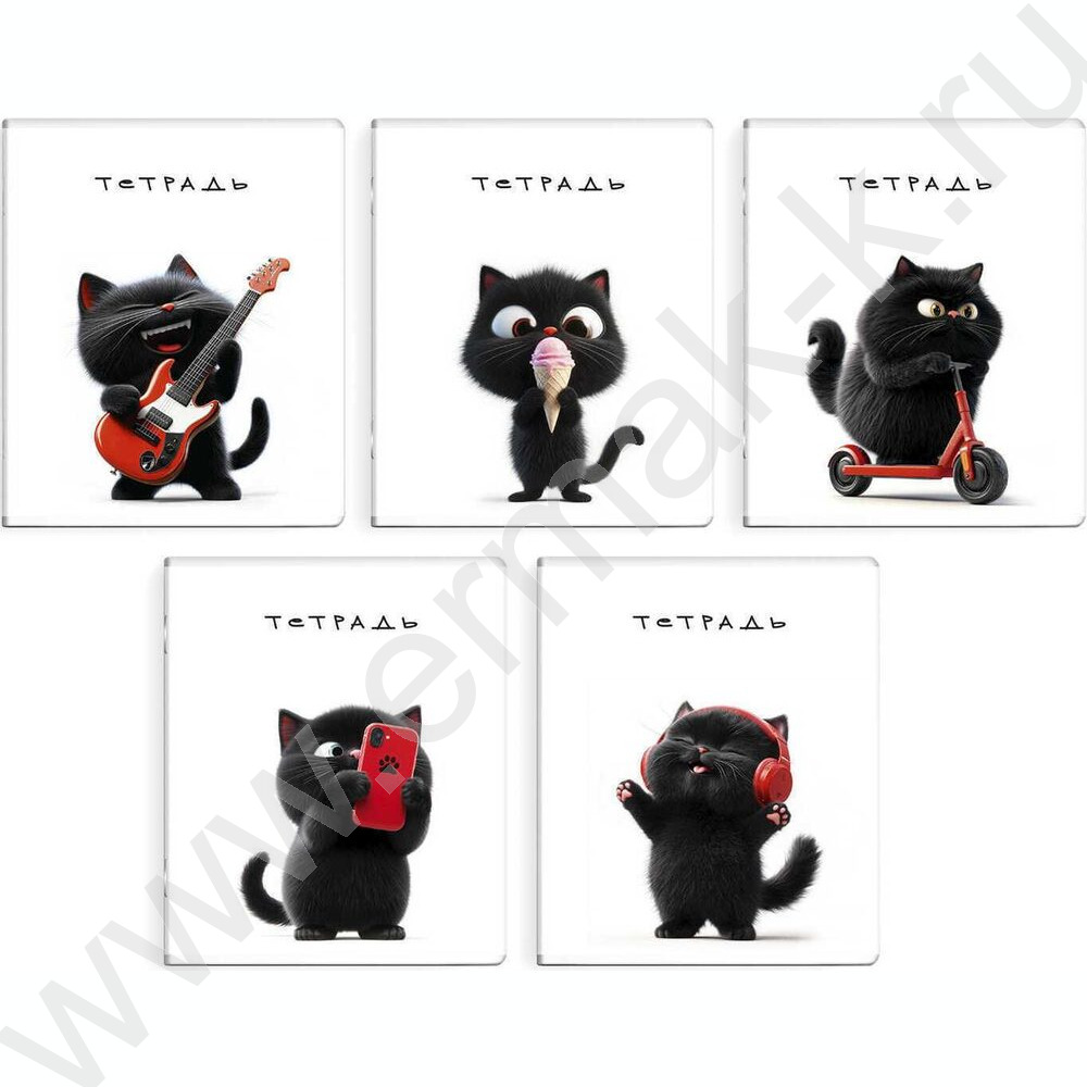 Тетрадь 48л клетка "Черный кот" /выб.ТВИН-лак/ ассорти