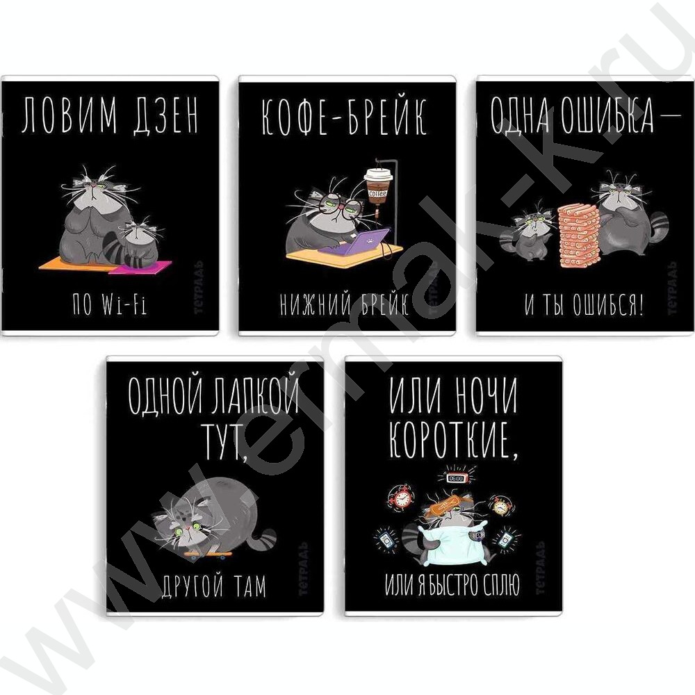 Тетрадь 48л клетка "Серый кот" /выборочный ТВИН лак/ ассорти