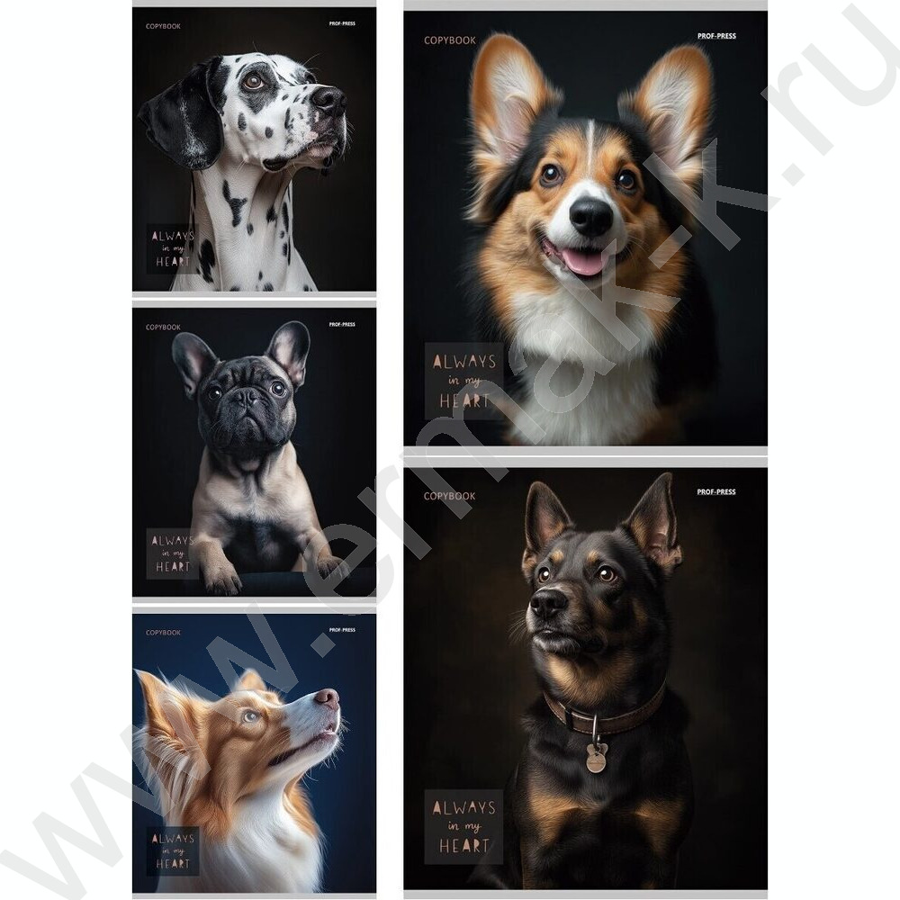 Тетрадь 48л клетка "Портрет фото собак" /лён/ ассорти