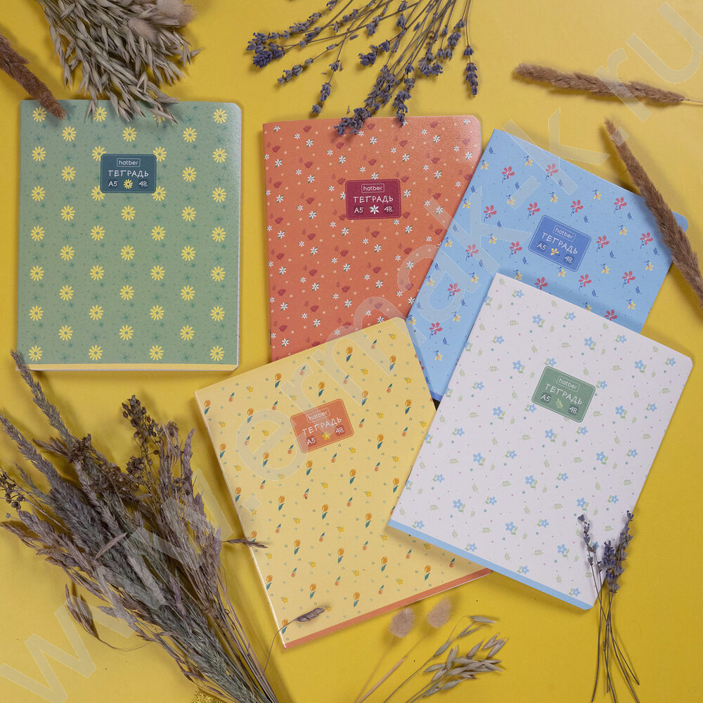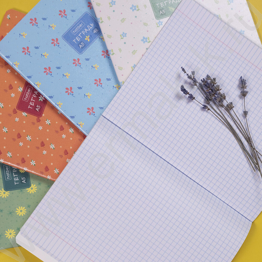 Тетрадь 48л клетка "Цветочный орнамент" /тиснение/ 5видов