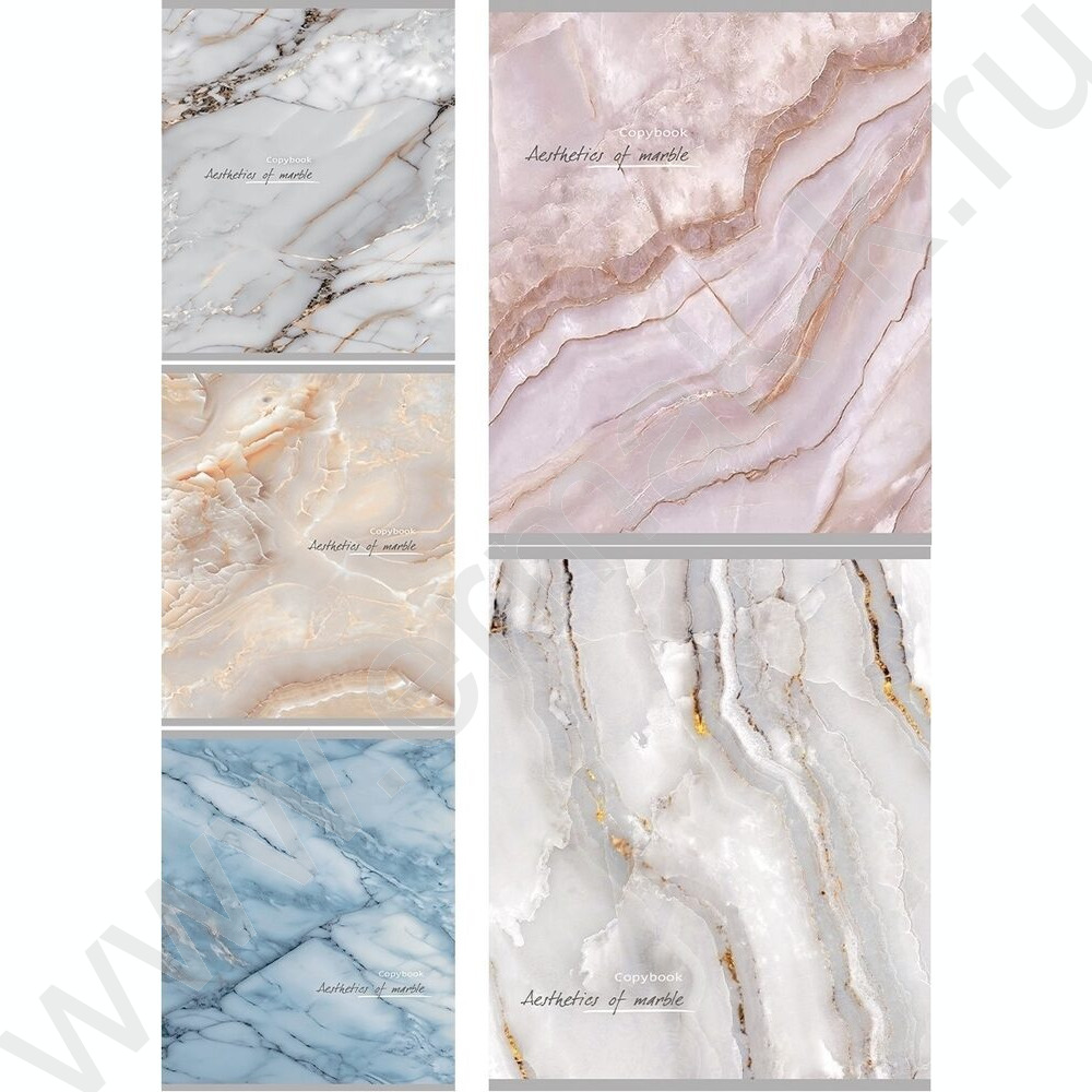 Тетрадь 96л клетка "Разный мрамор" /лен/ ассорти