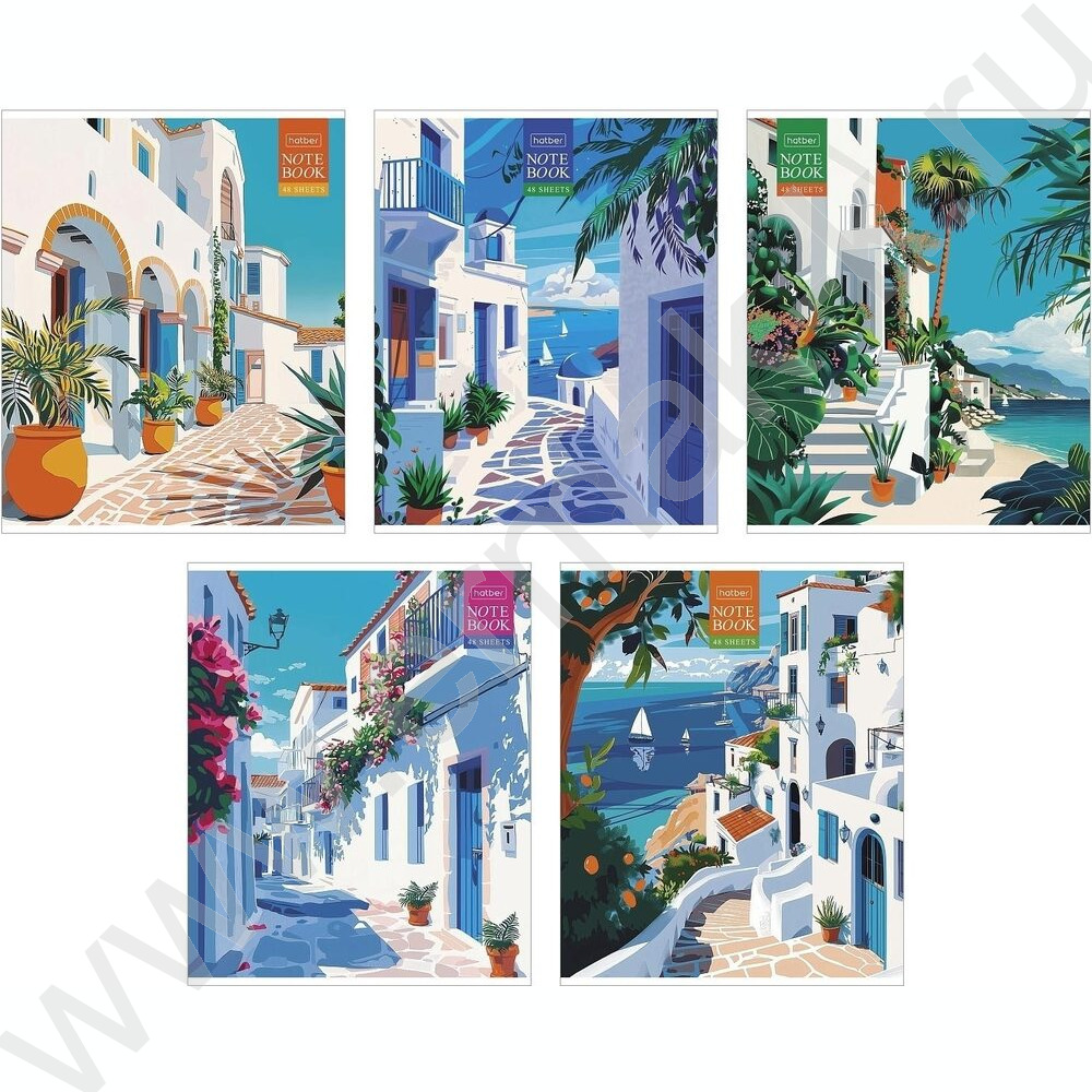 Тетрадь 48л клетка "Солнечные кварталы" /тиснение/ 5видов