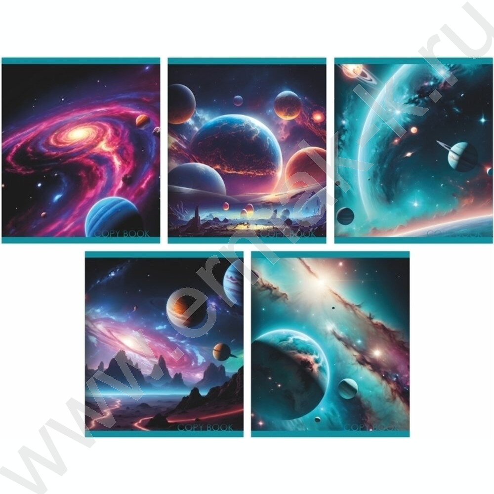 Тетрадь 48л клетка "Галактика" /мел.карт. /ассорти