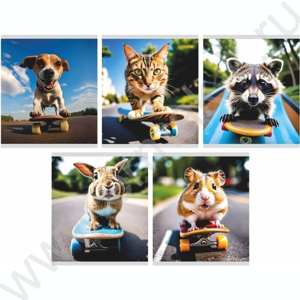 Тетрадь 48л клетка "Зверята на скейтах" /мел.карт. /ассорти