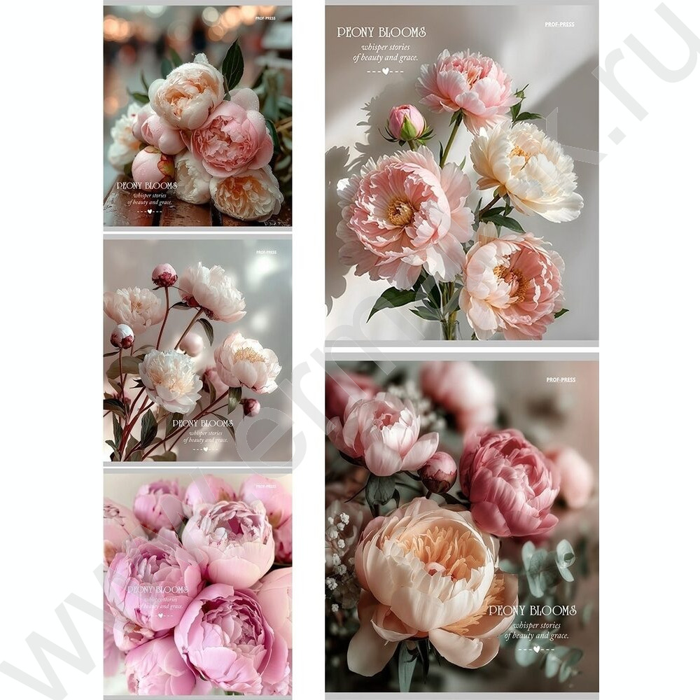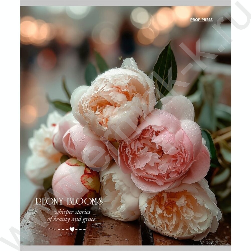 Тетрадь 48л клетка "Нежные пионы-3" ассорти