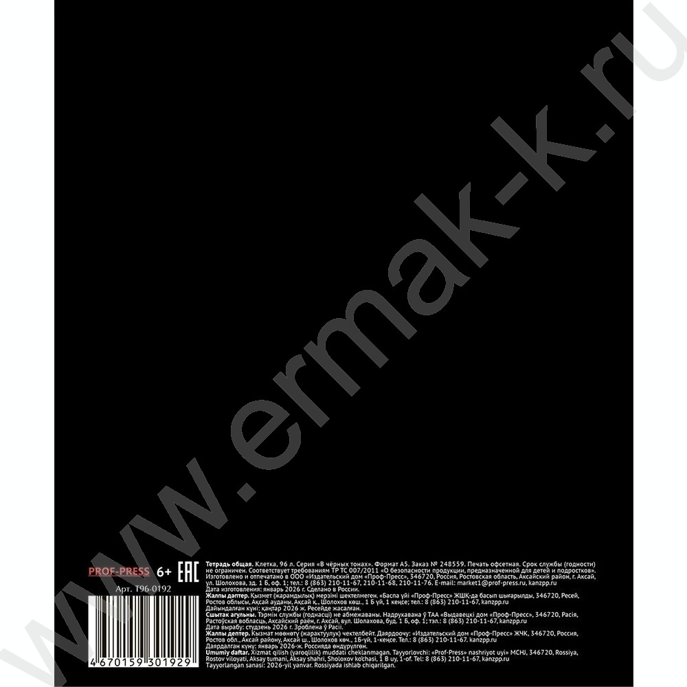 Тетрадь 96л клетка "В чёрных тонах" / софт-тач/ ассорти NEW