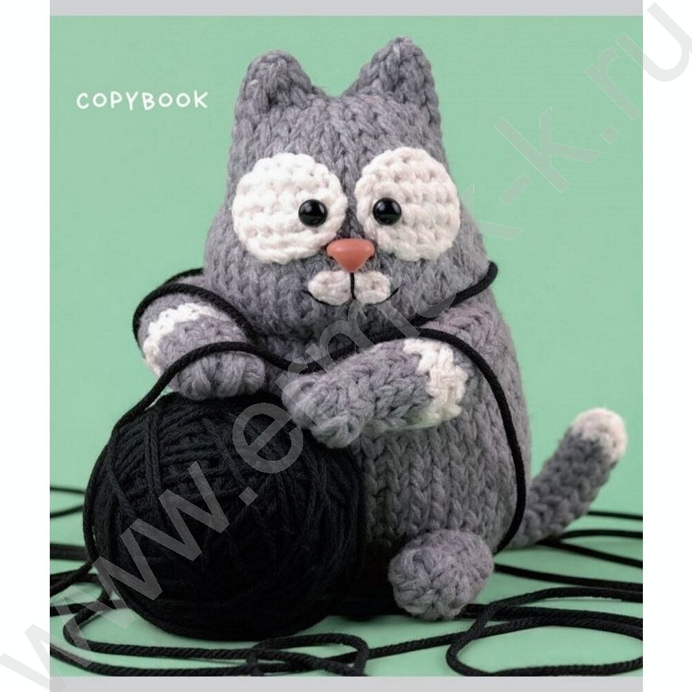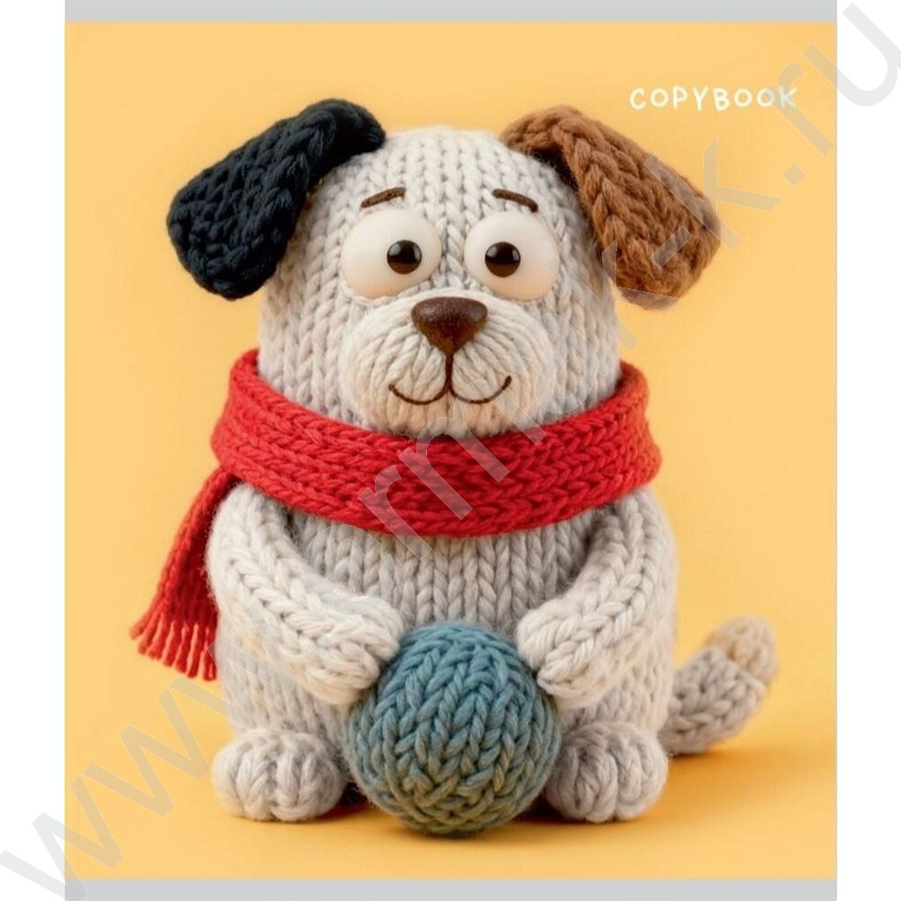 Тетрадь 48л клетка "Вязаные животные" /холст/ 5видов NEW
