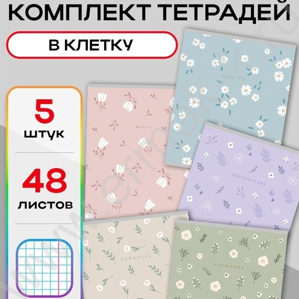 Тетрадь 48л клетка "Нежные цветы" ассорти NEW