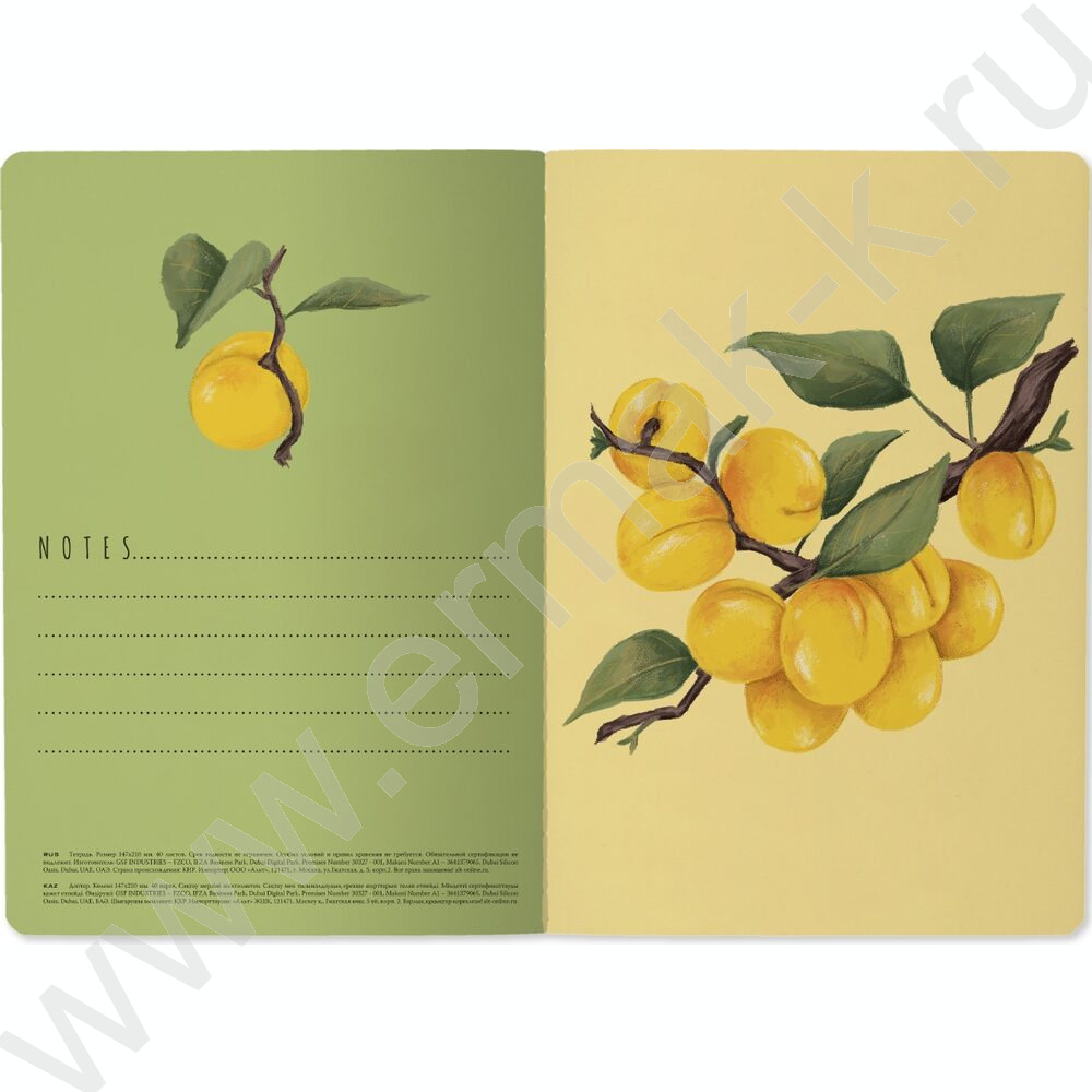 Тетрадь 40л клетка "Flora.Paradaise.Абрикосы" 70 г/м2 бежевая бумага NEW