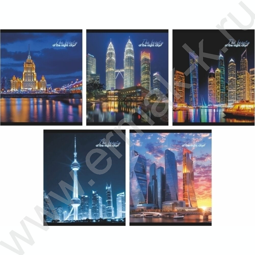 Тетрадь 48л клетка "Ночные огни" /мел.карт. /ассорти NEW