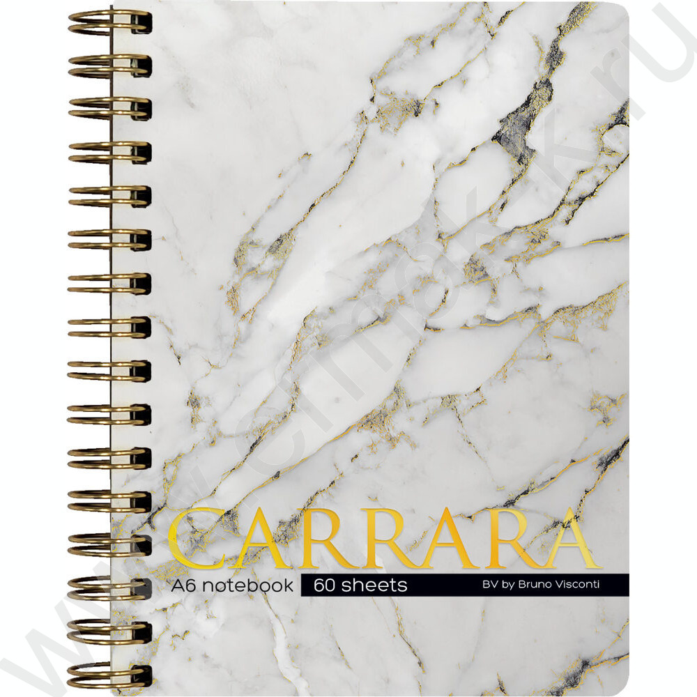 Тетрадь 60л А6 клетка/спираль "Carrara" 70 г/м2 бежевая бумага,мат.лам.Soft Touch, фольга золот NEW