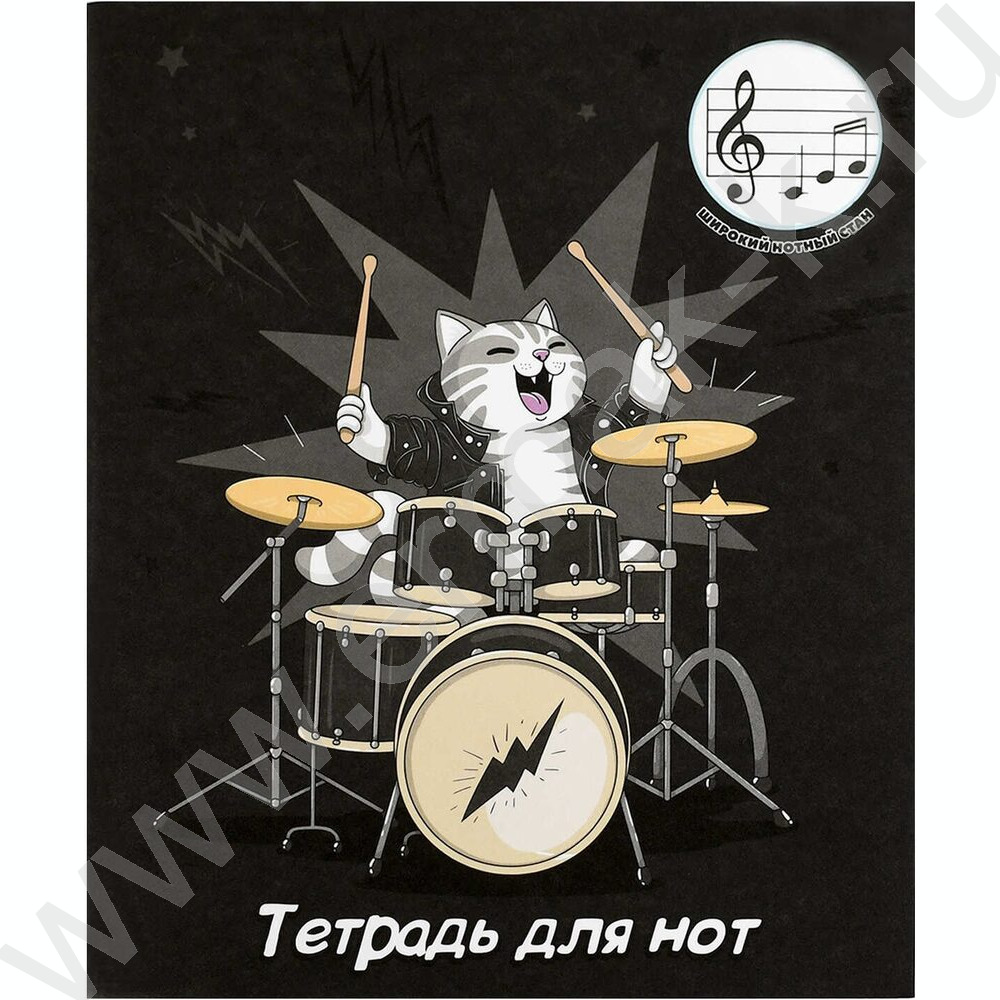 Тетрадь для нот 24л А5+ мл.классы "Кот-барабанщик" расширенный нотный стан