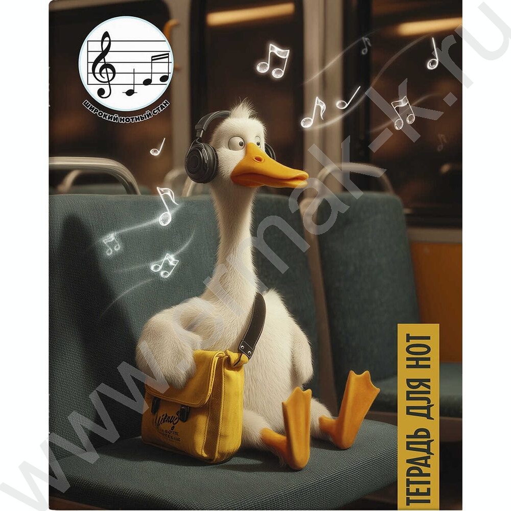 Тетрадь для нот 24л А5+ мл.классы "Гусь в наушниках" расширенный нотный стан NEW