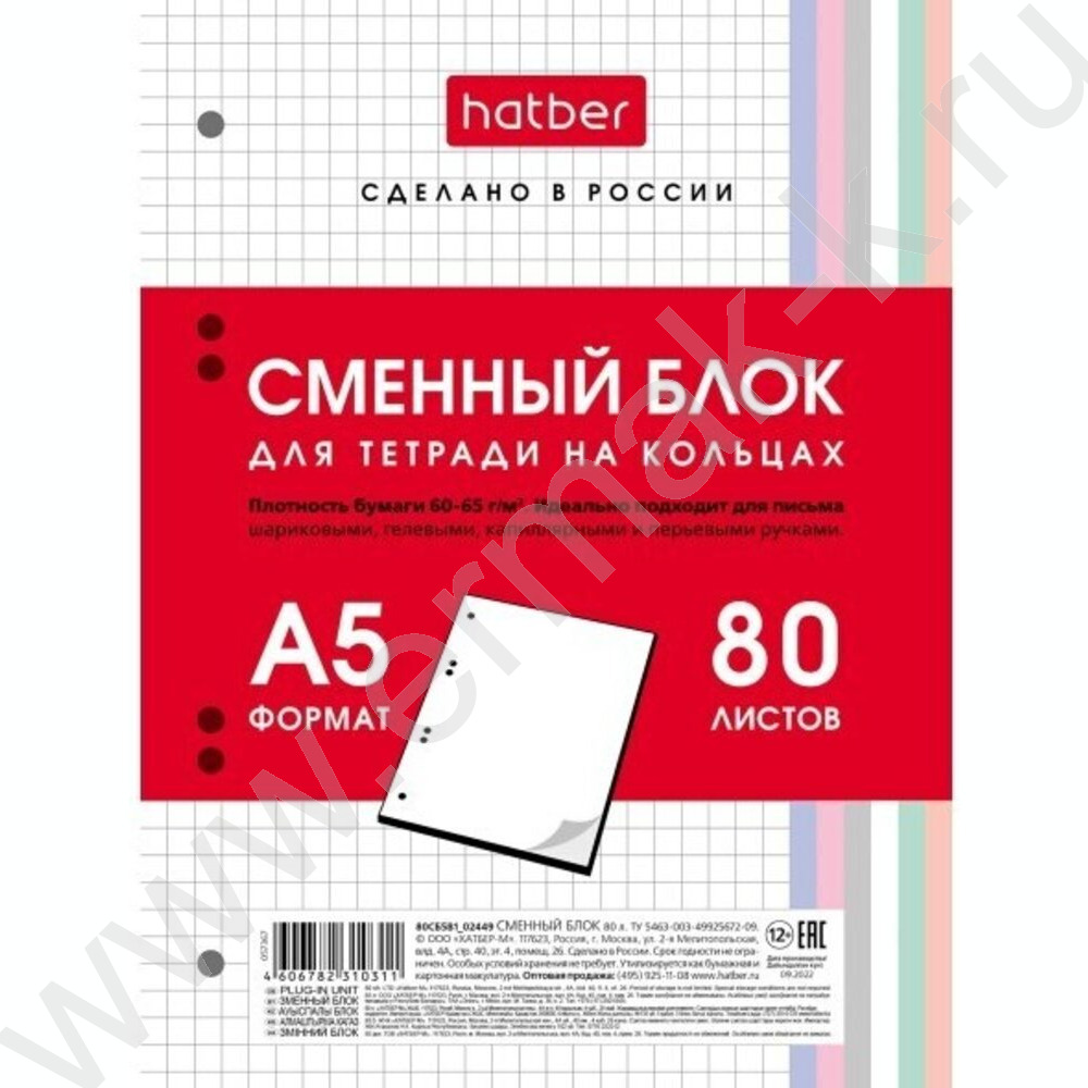 Сменный блок А5 80л клетка универс.перфорация/многоцветный срез