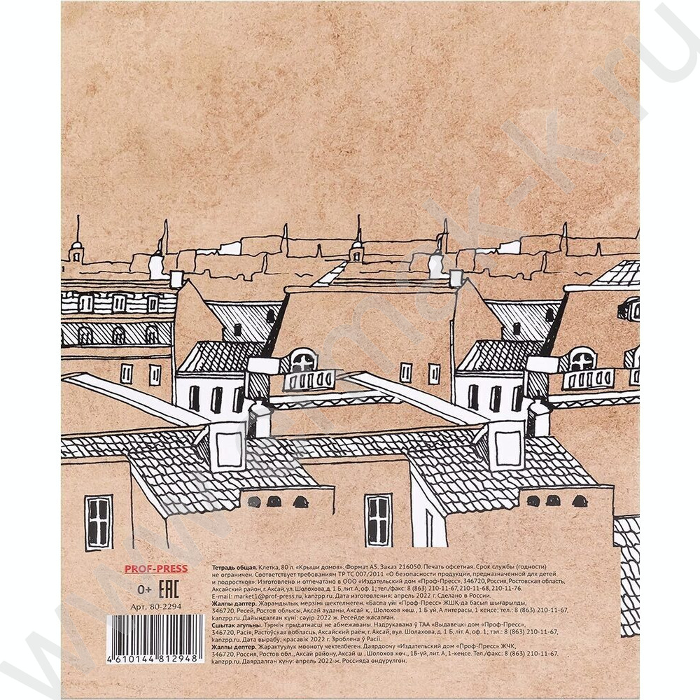Тетрадь 80л клетка/кольца "Крыши домов"