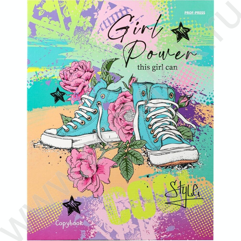 Тетрадь 80л клетка/кольца "Кеды и цветы" /лянец/лен/