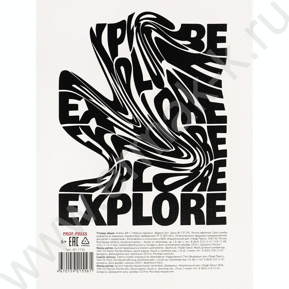 Тетрадь 80л клетка/кольца "Чёрные надписи" /глянец/лён