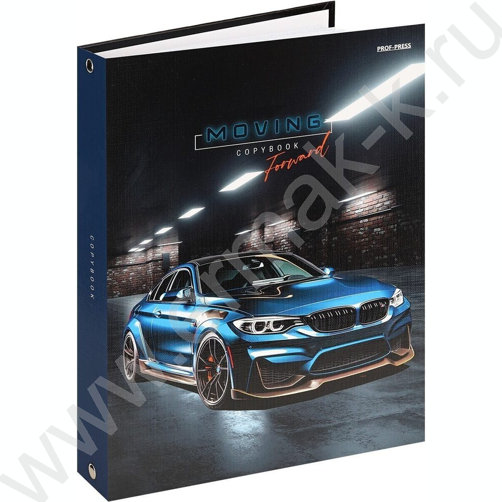 Тетрадь 80л клетка/кольца "Синий автомобиль-8" /глянец/лён
