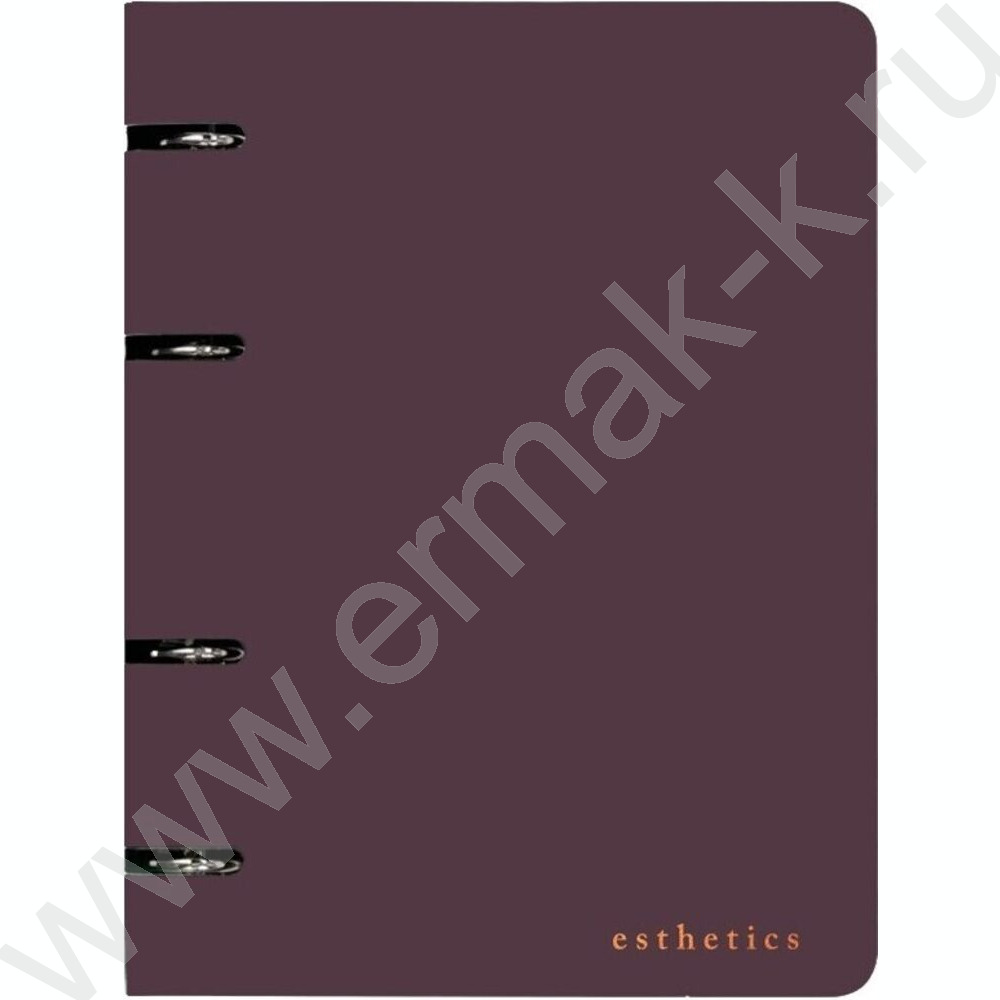 Тетрадь 80л А5 клетка/кольца /гибкая обл. искус. кожа/ "Esthetics" /бургунди NEW