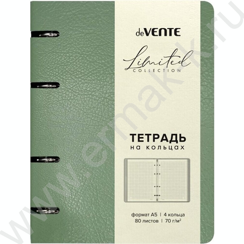 Тетрадь 80л А5 клетка/кольца /гибкая обл. искус. кожа /мятно-зеленая NEW