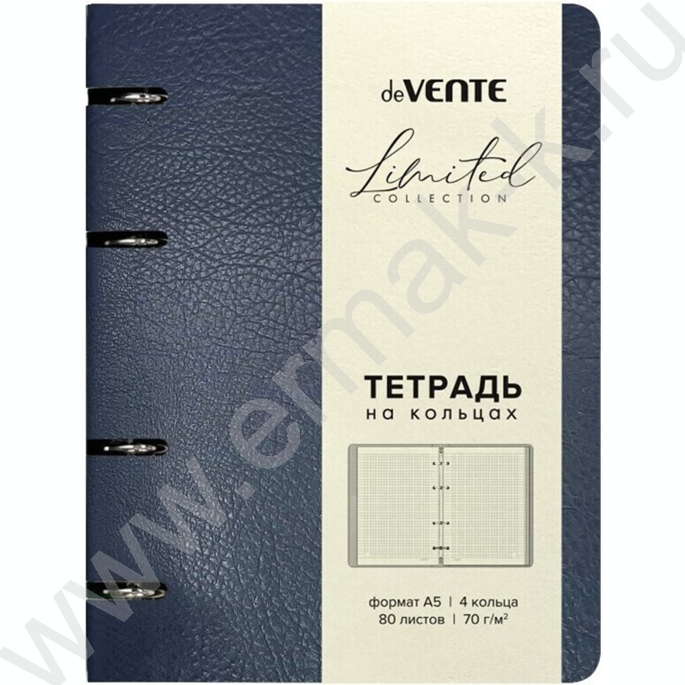 Тетрадь 80л А5 клетка/кольца /гибкая обл. искус. кожа /темно-синяя NEW