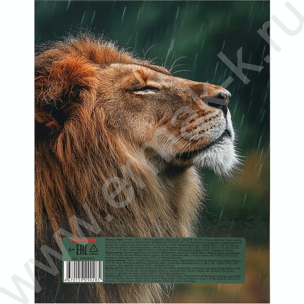 Тетрадь 100л клетка/кольца "Лев под дождём"
