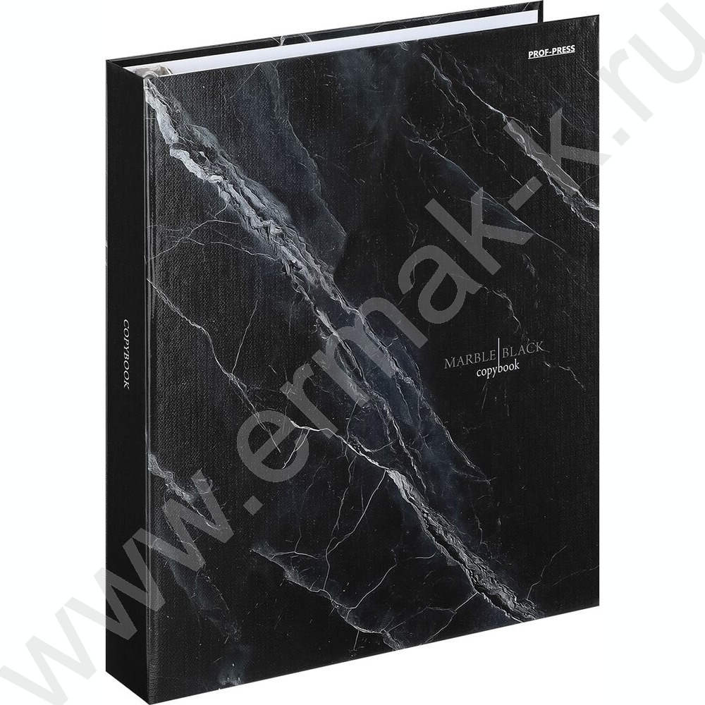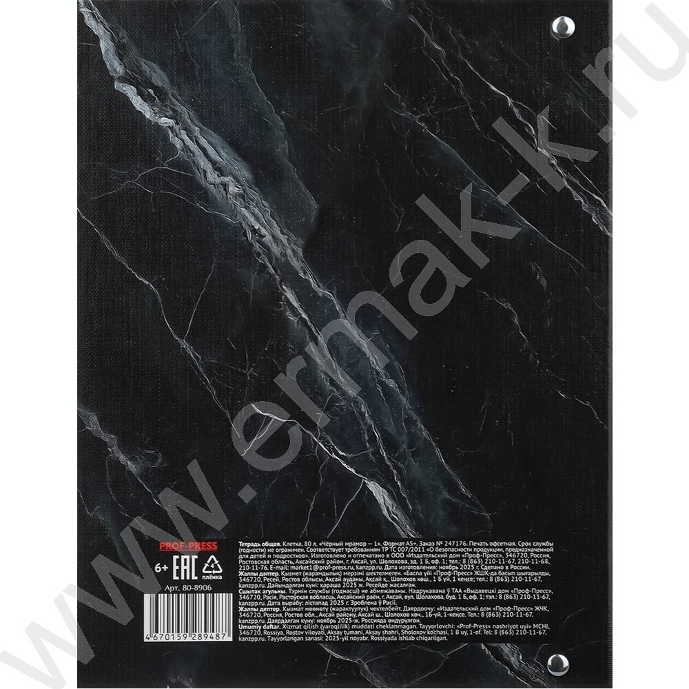 Тетрадь 80л клетка/кольца "Чёрный мрамор-15" /глянец/лён