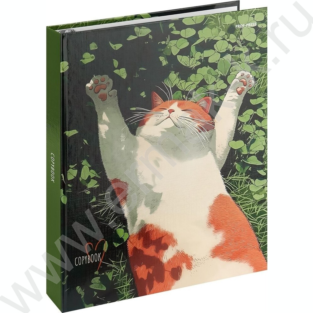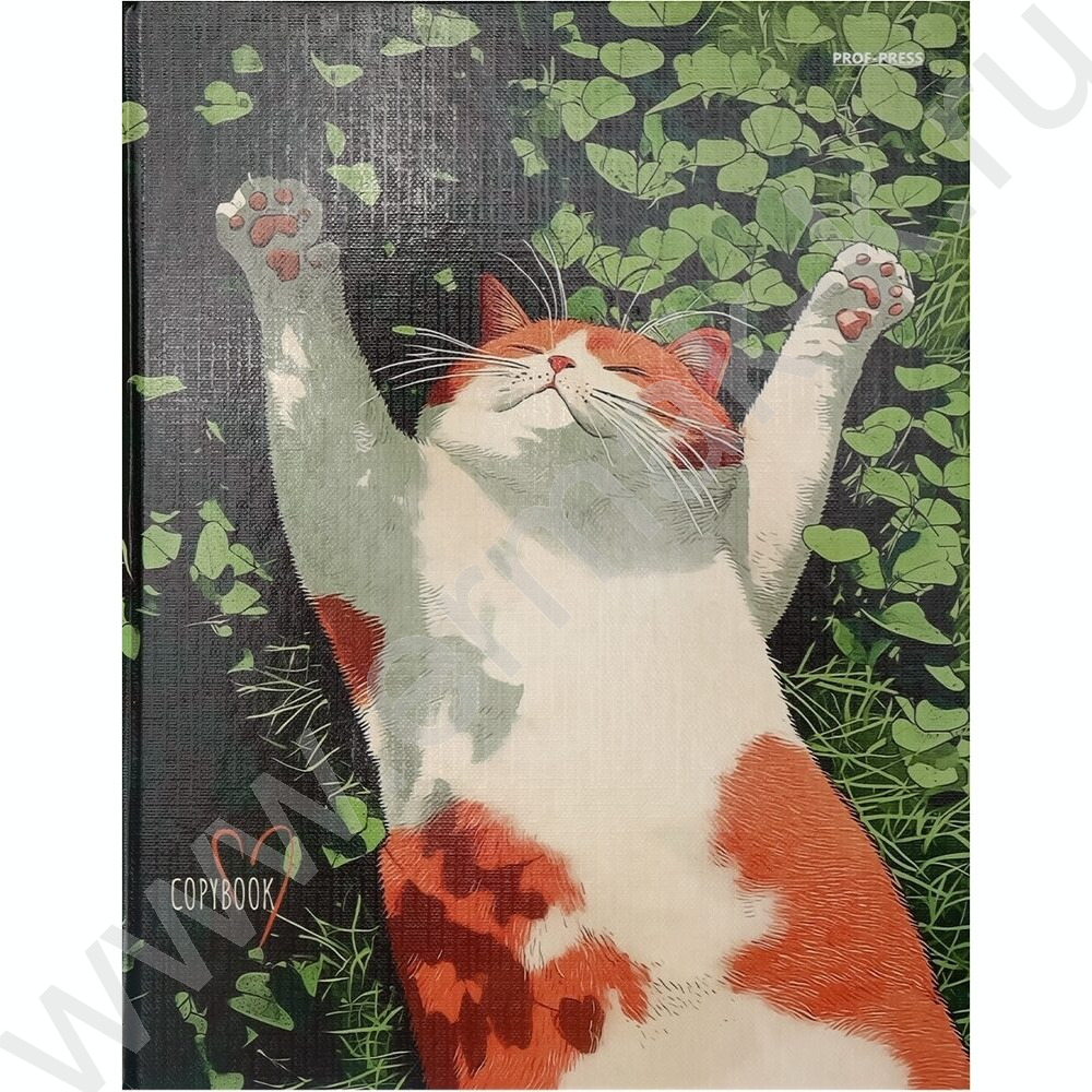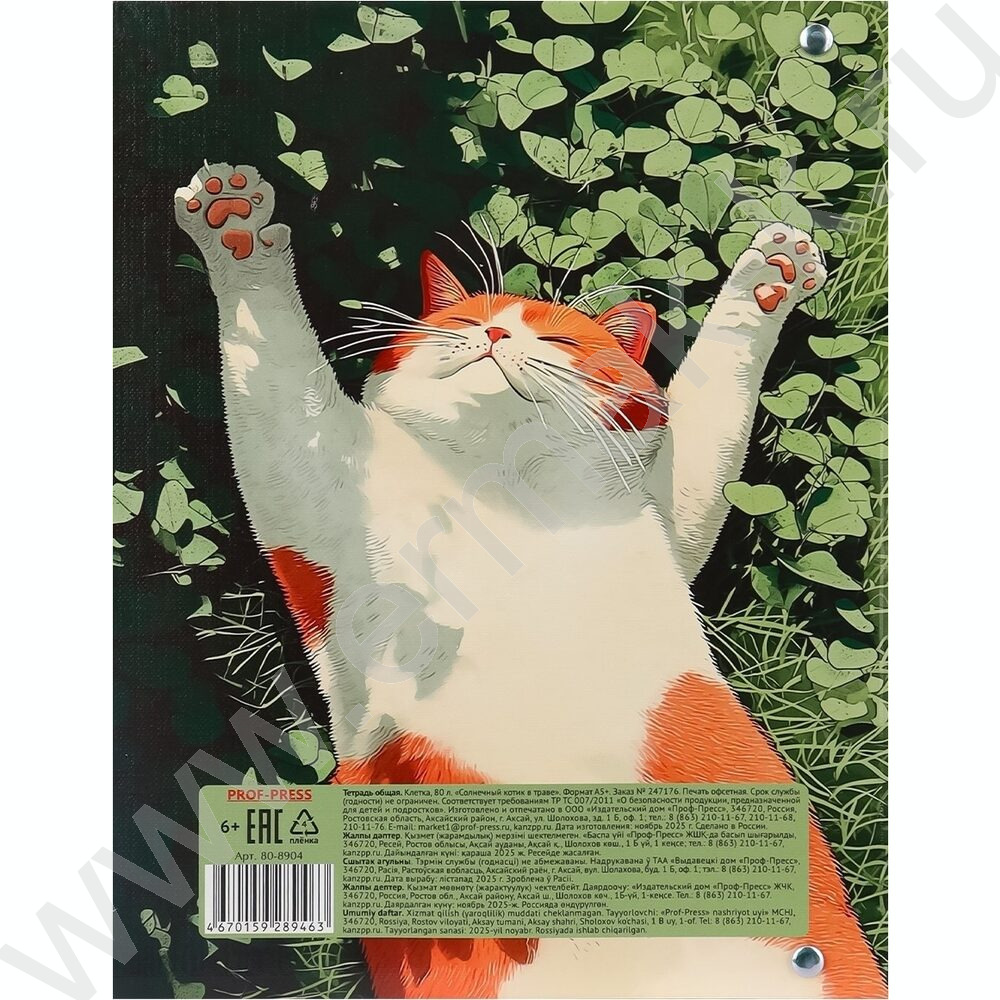 Тетрадь 80л клетка/кольца "Солнечный котик в траве" /глянец/лён