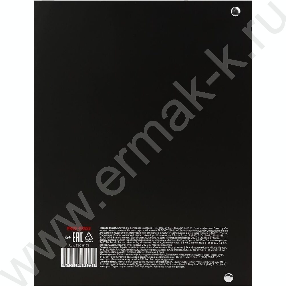 Тетрадь 80л клетка/кольца "Чёрная классика-3"