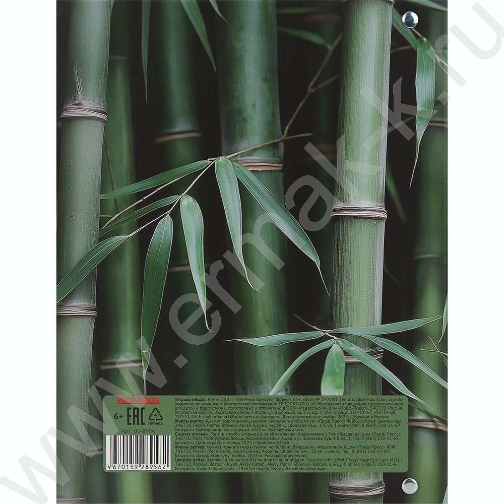Тетрадь 80л клетка/кольца "Зеленый бамбук" NEW