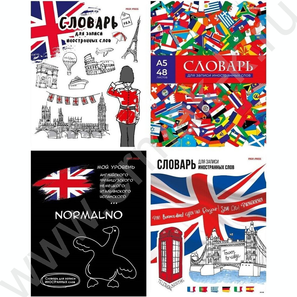 Словарик 48л А5 д/записей слов спецлиновка "Иностранная тематика" 4вида