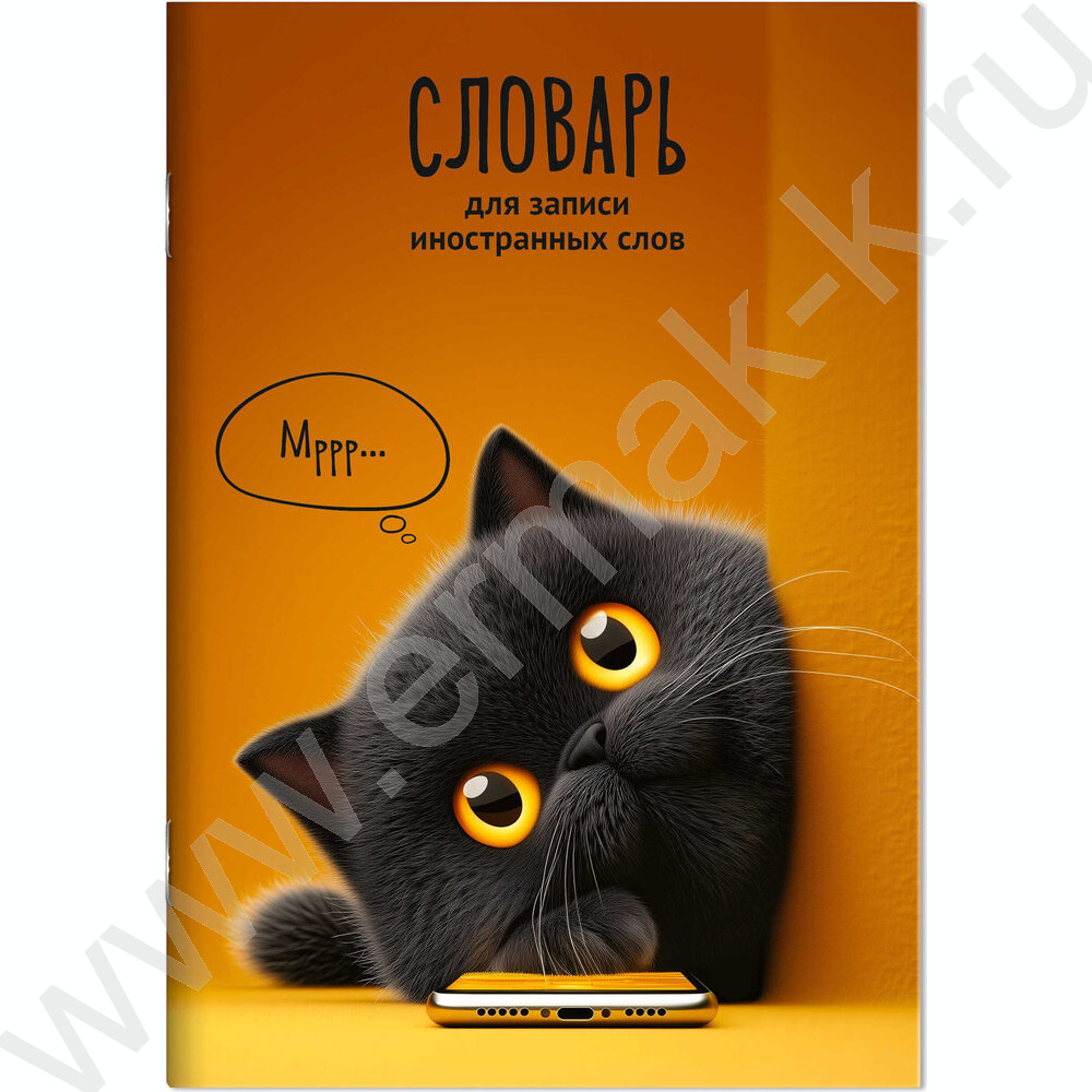 Тетрадь 24л А5 д/записей иностранных слов "Кот с телефоном" NEW
