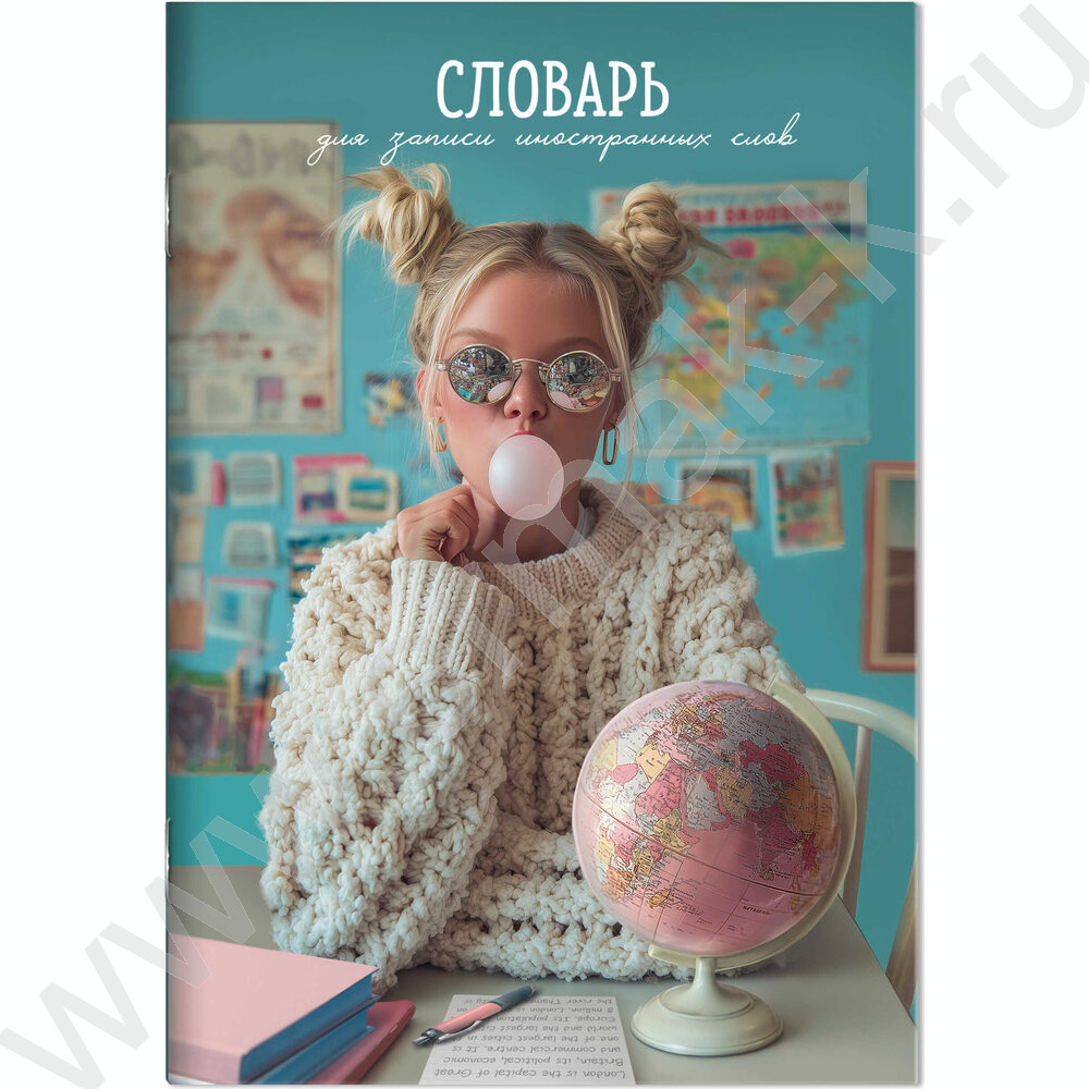 Тетрадь 24л А5 д/записей иностранных слов "Девушка с глобусом" NEW