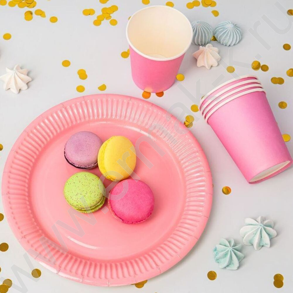 Стаканы бумажные 250мл/6шт Пастель розовый