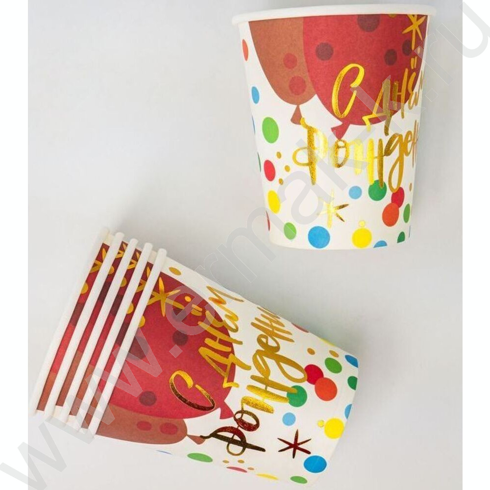 Стаканы бумажные 250мл/6шт Веселый праздник