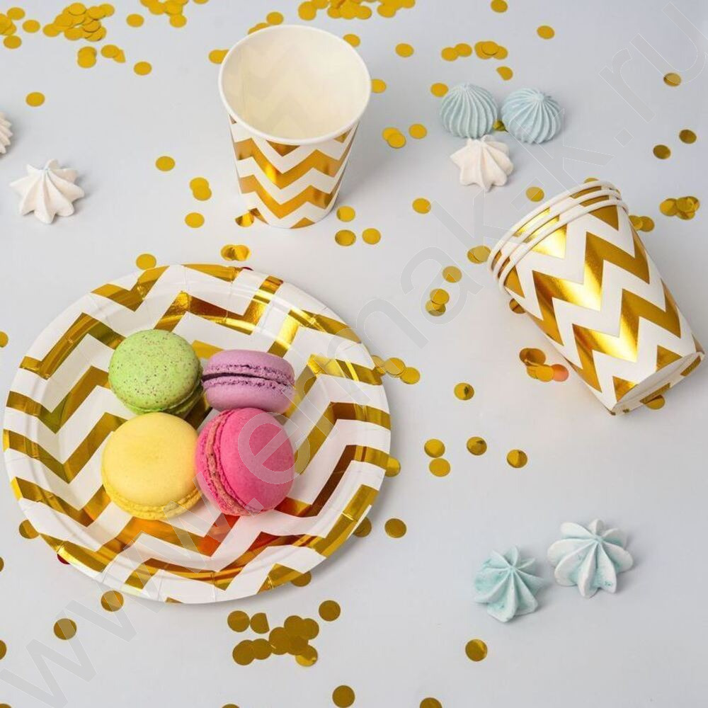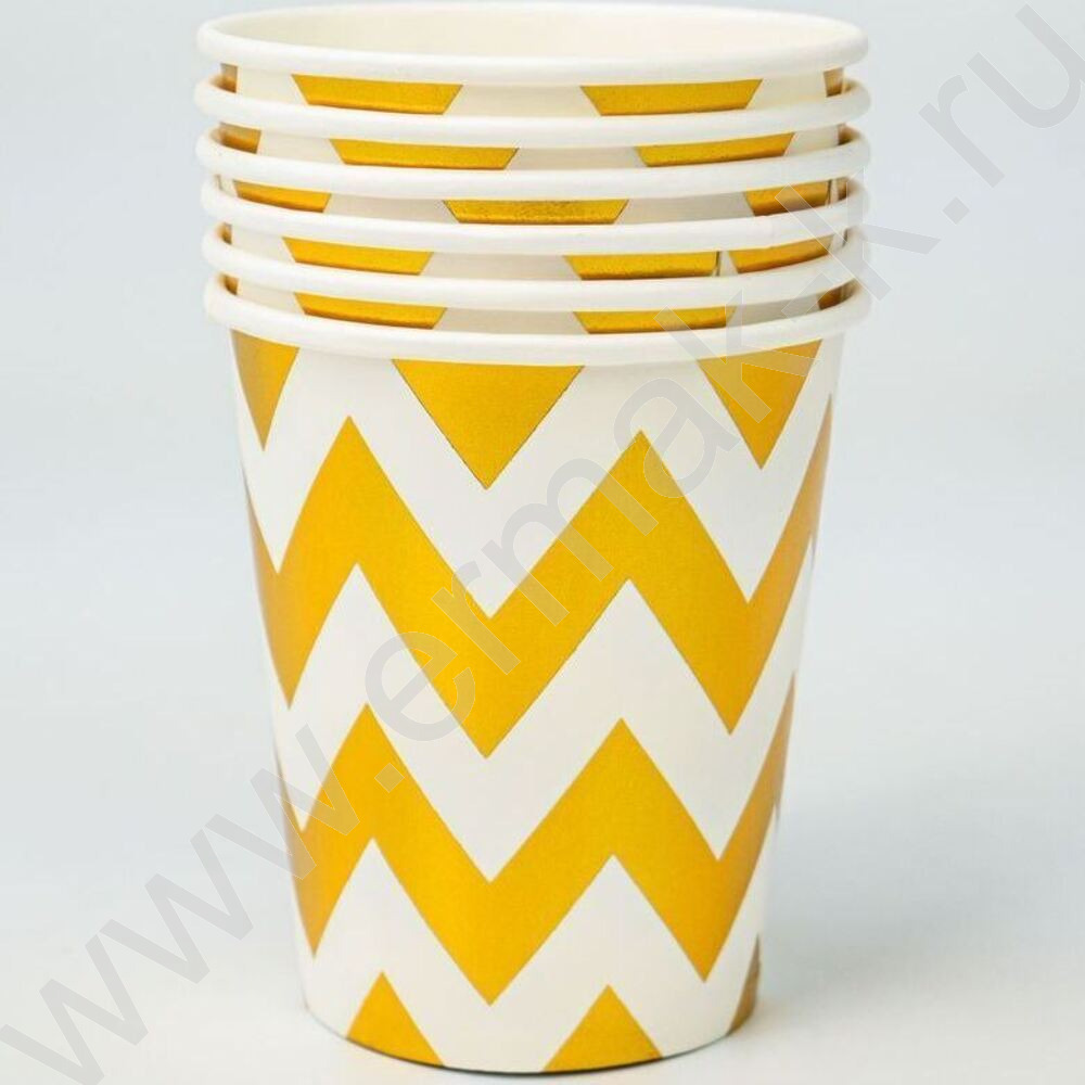 Стаканы бумажные 250мл/6шт Зигзаг золото