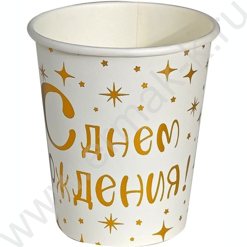 Стаканы бумажные 250мл/6шт С Днем рождения! золото