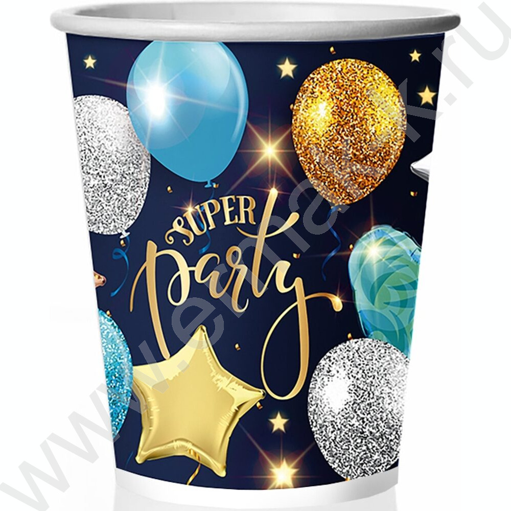 Стаканы бумажные 250мл/10шт Супер пати голубой