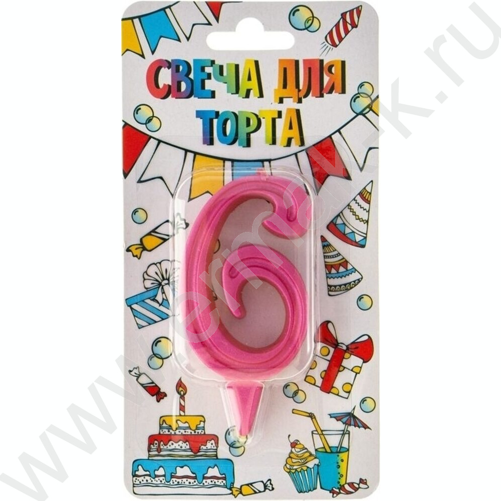 Свеча -цифра "6" тортовые Грация розовая