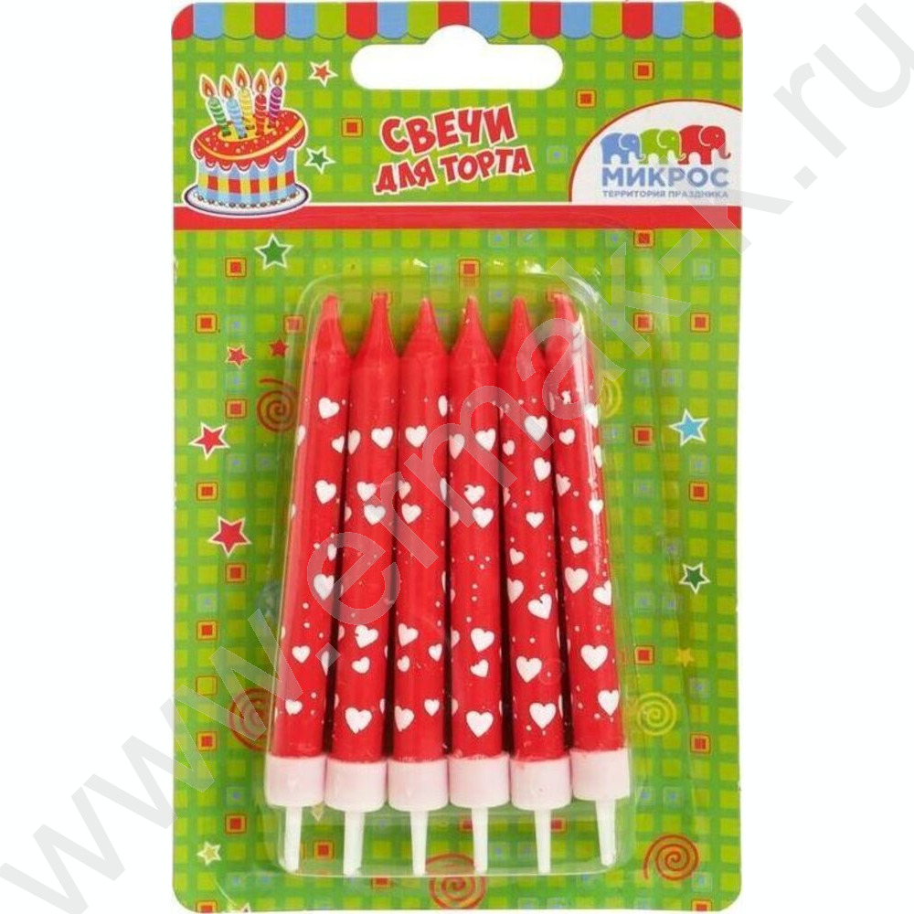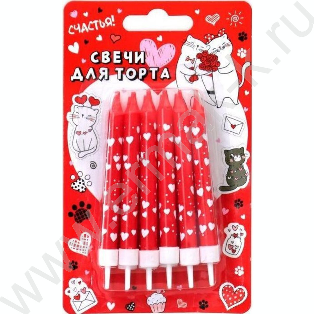 Свечи д/торта "Сердечки" 8 см с держателями 12шт/уп