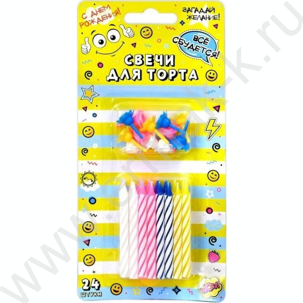 Свечи д/торта с держателями 6см 24шт/уп